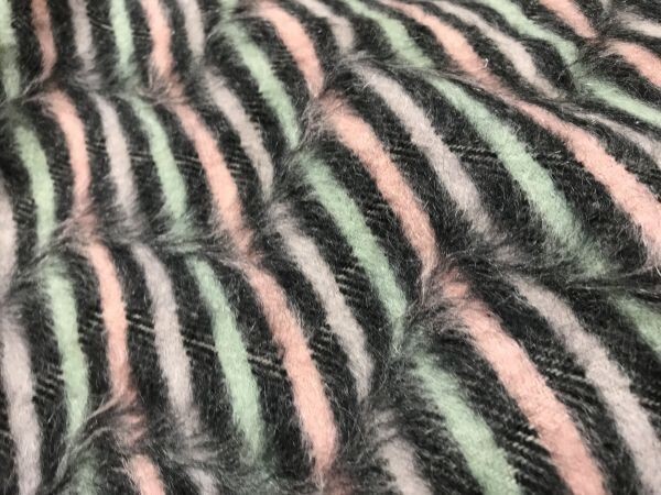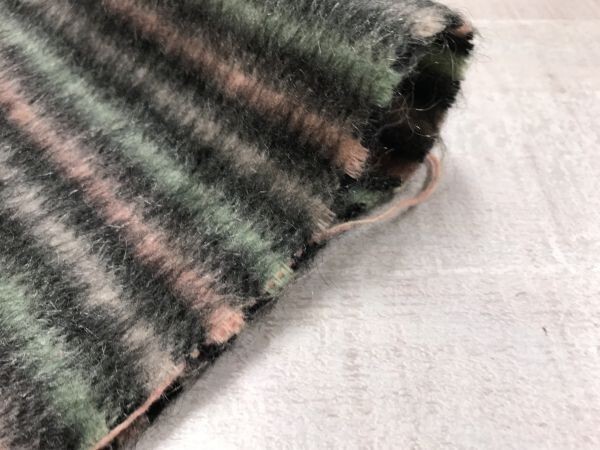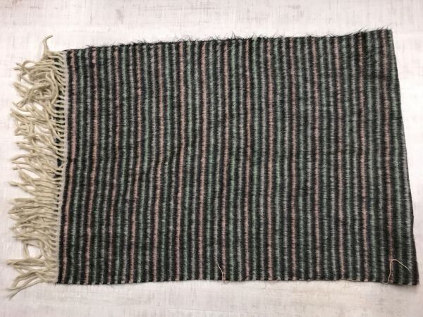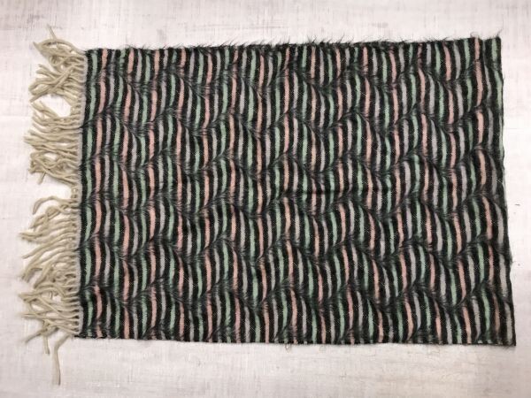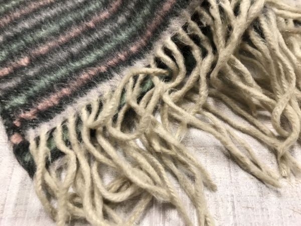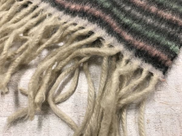 オールド レトロ ボーダー ジャガード ウール混 フリンジ マフラー 男女兼用 グレー系です。