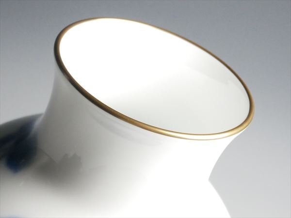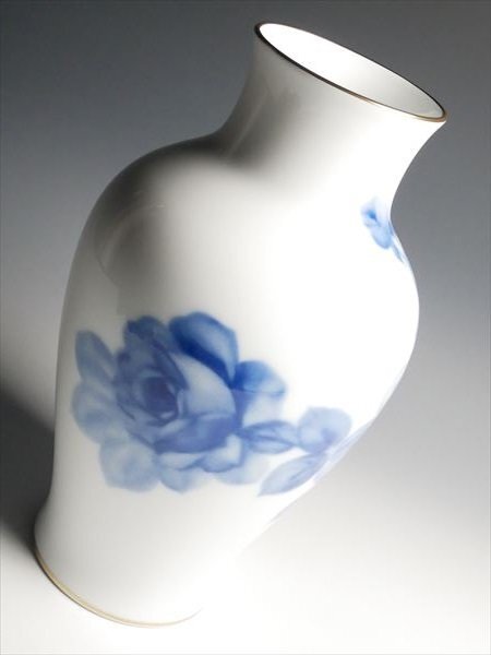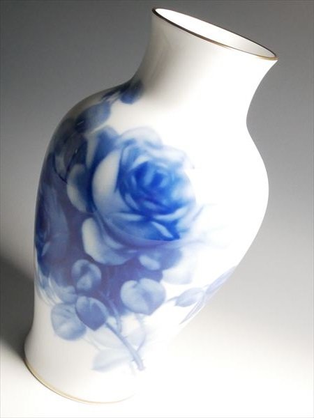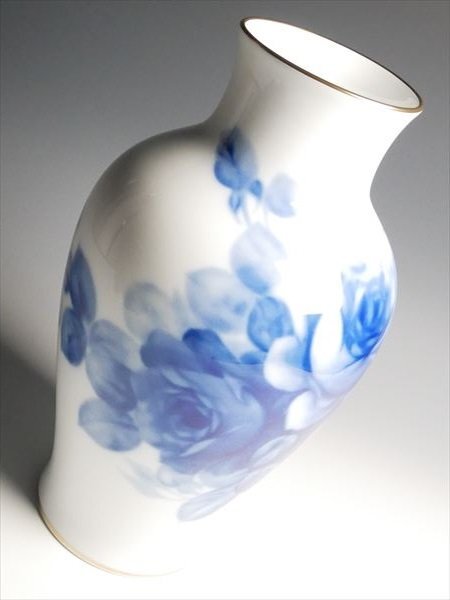 大倉陶園 金彩 岡染 ブルーローズ 大型 ベース 花瓶 花入 飾壷 35cm k461