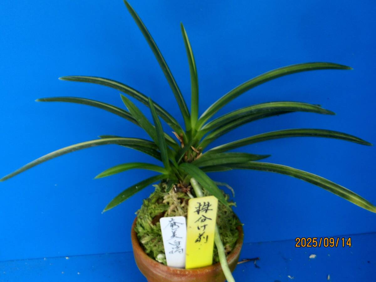 商品は奄美富貴蘭【奄美白縞】の株分け余剰株です。写真2は株分け前の姿、写真3・写真4が出品物の拡大写真です。地味柄ですので激安から出品します。