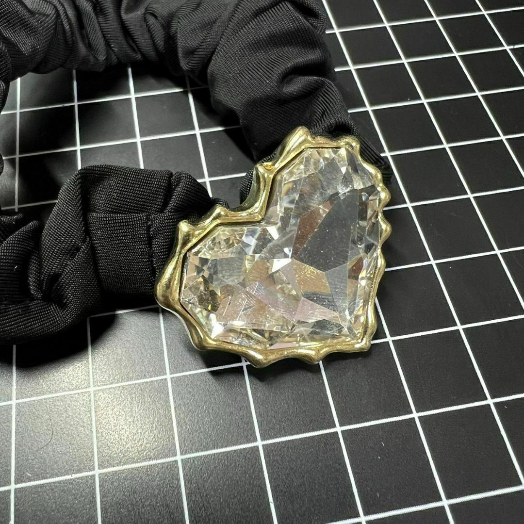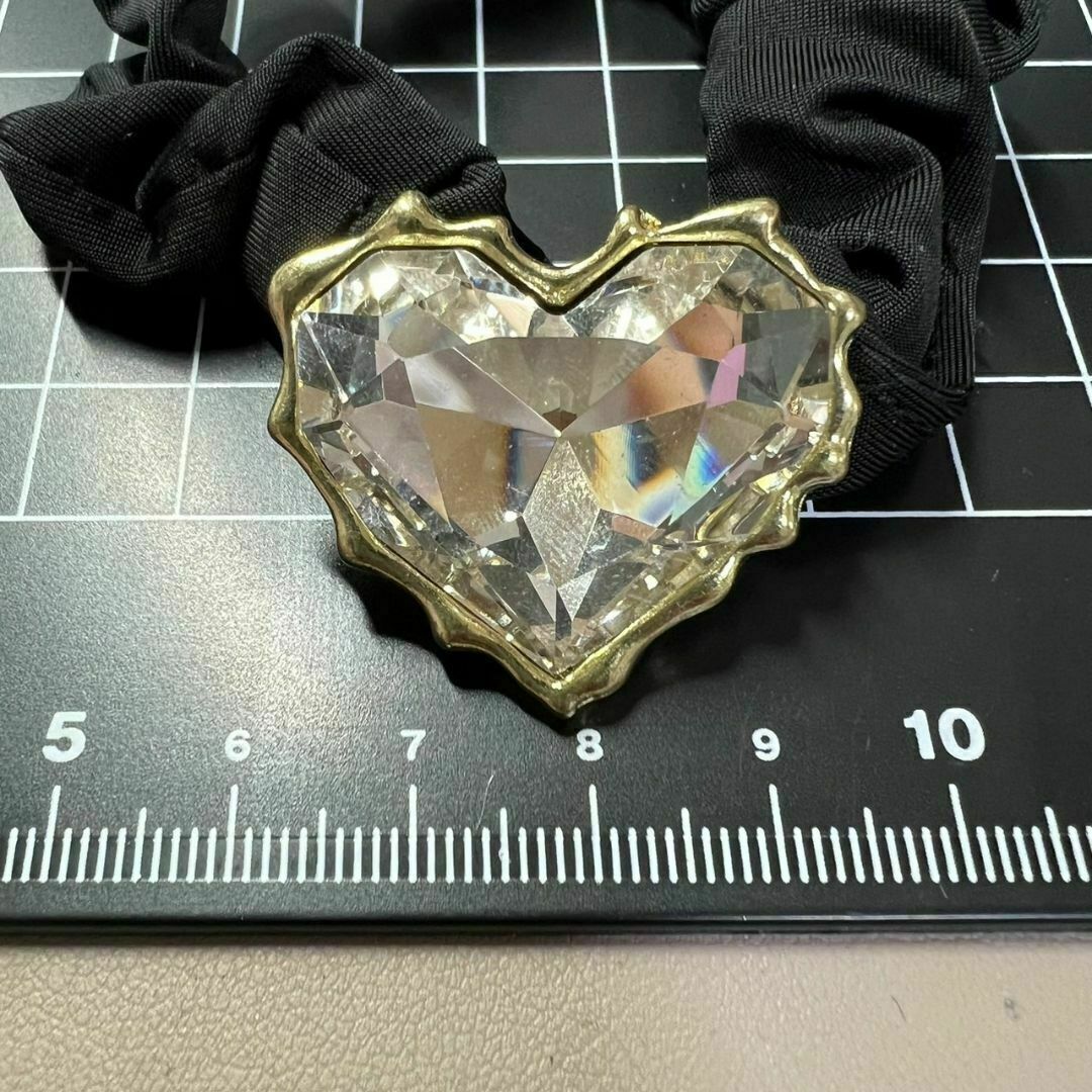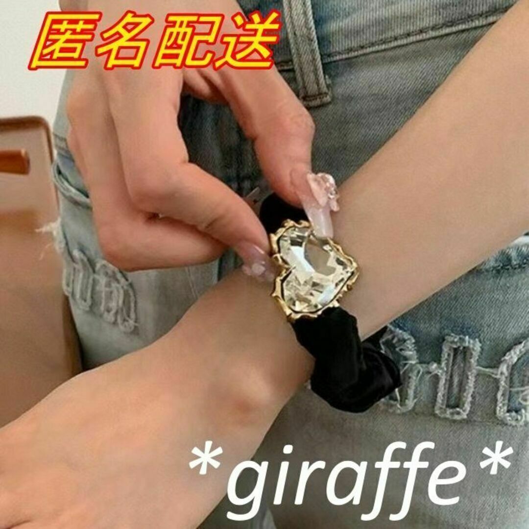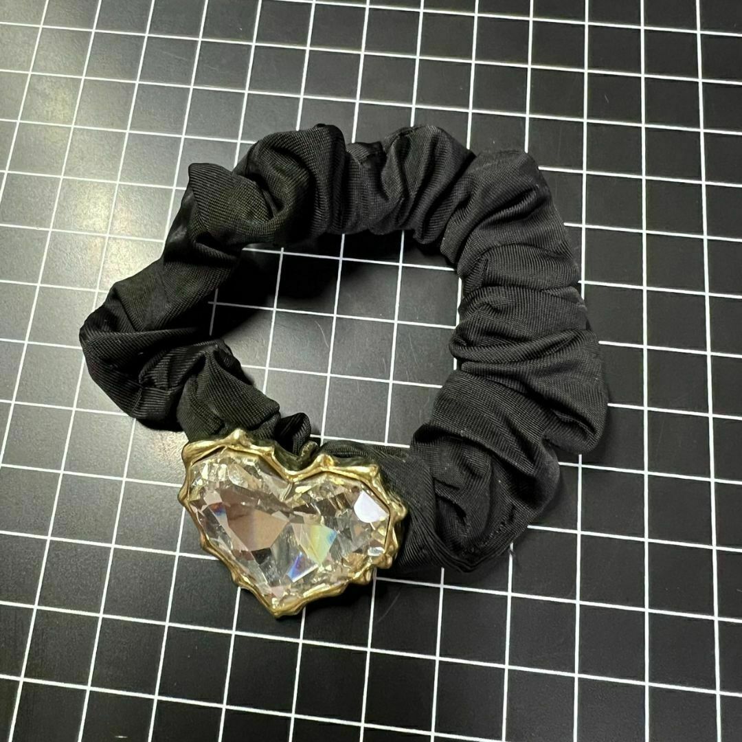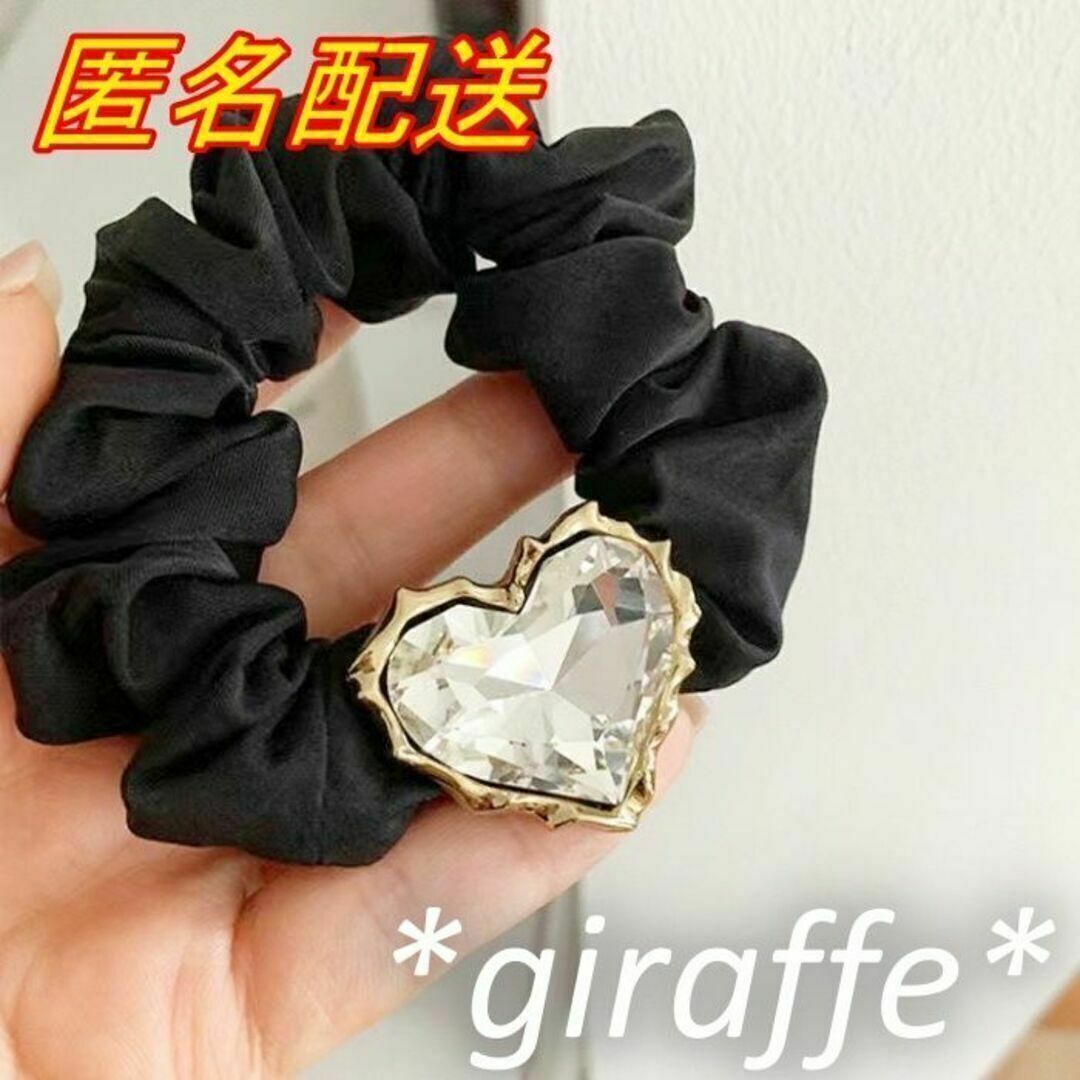 E397 匿名配送 ヘアゴム シュシュ クリスタル ハート ブラック 髪留め ヘアゴム