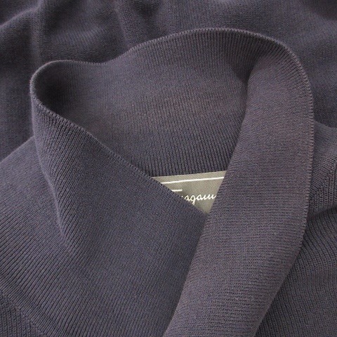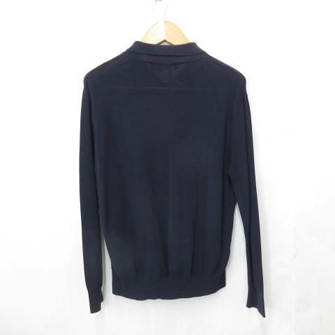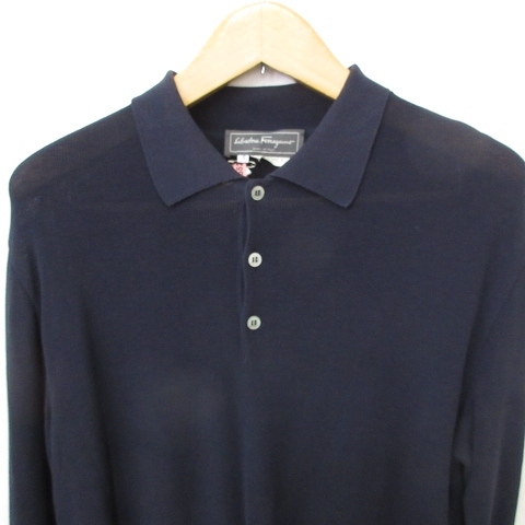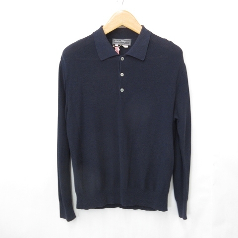 サルヴァトーレフェラガモ Salvatore Ferragamo ニット セーター 長袖 ポロ衿 コットン 紺 ネイビー S ☆AA★ メンズ