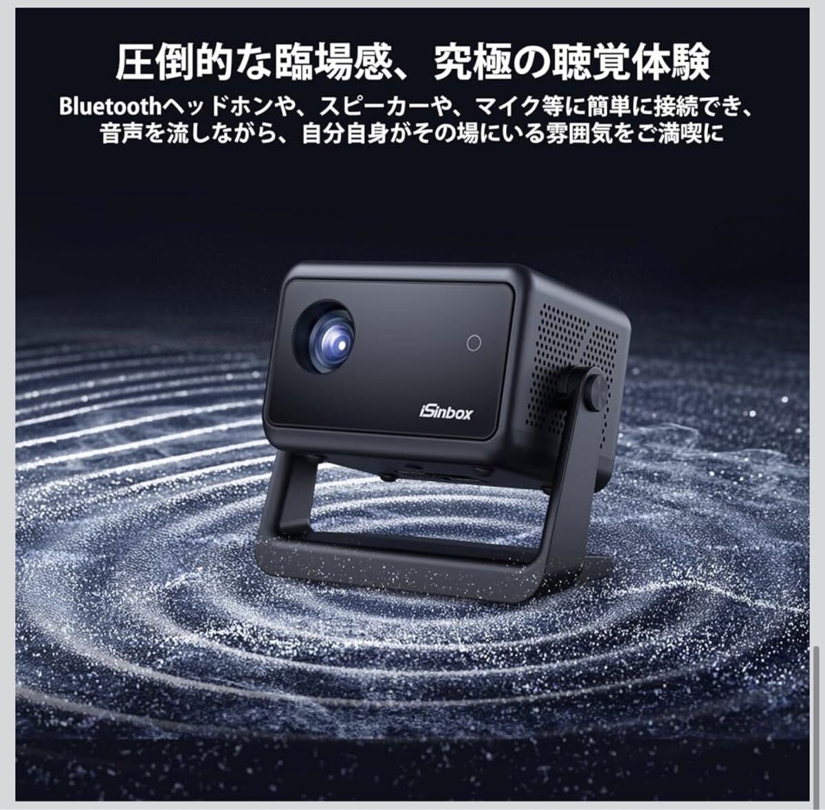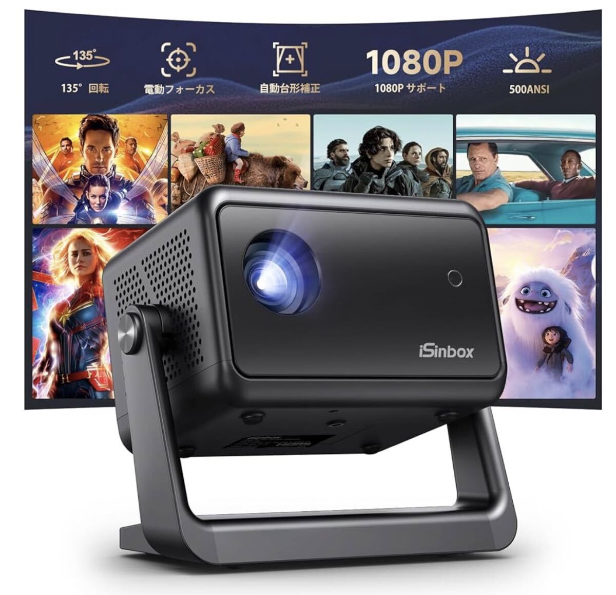 【135°回転・a電動フォーカス】 iSinbox 500 ANSIルーメンスタンド一体型プロジェクター 家庭用 天井投影 1080P対応 200"大画面 bluetooth5.3&Wi-Fi 6 小型 25000LM ホームプロジェクター 短距離投影 50%ズーム IOS/Android/PC等対応 日本語取扱説明書 Q8