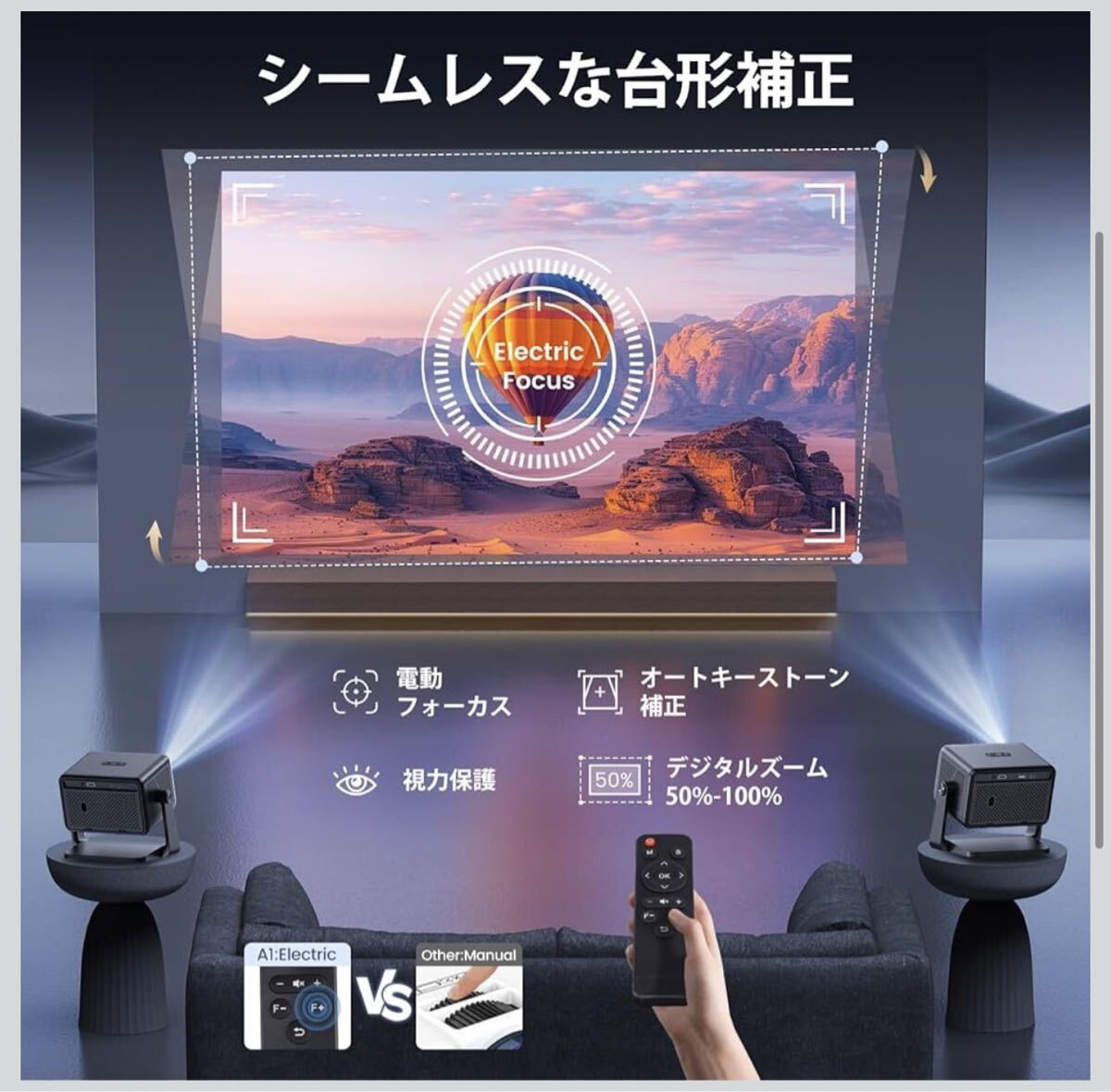 【簡単に電動フォーカス|オートキーストーン補正 】 iSinbox 小型プロジェクターは、マートセンシング技術を活用して簡単にセットアップできます。 手動でのフォーカスつまみ操作は不要で、リモコンワンクリックで天井向けプロジェクターが自動的にフォーカスを調整し、オートキーストーン補正機能により、どのような角度から投影してもスクリーンが完璧に整列されます。
