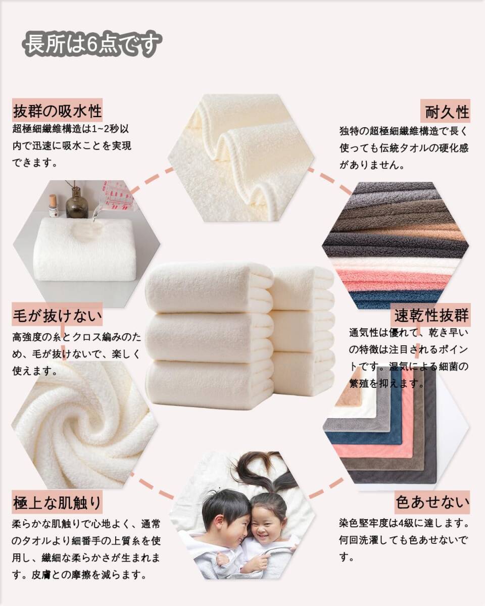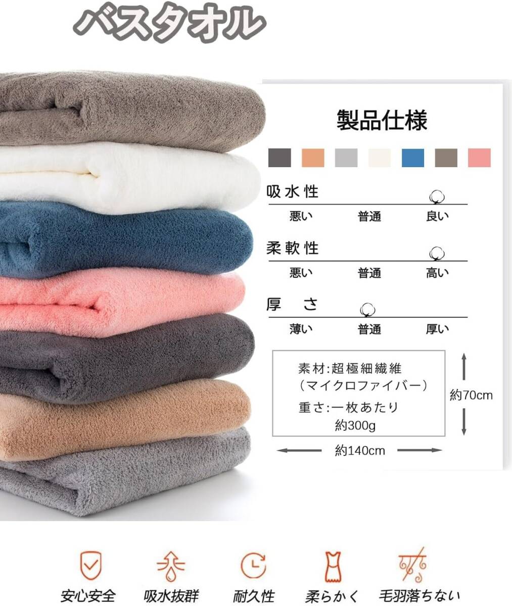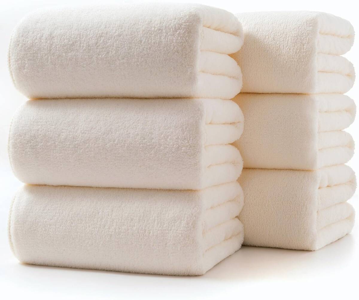 アイボリー色 バスタオル ふわふわ 大判 [Lumimi 6枚セット グレー 70*140cm ] ホテル仕様 タオル 吸水速乾 柔らか肌触り