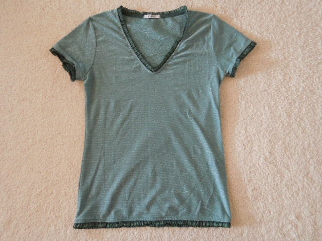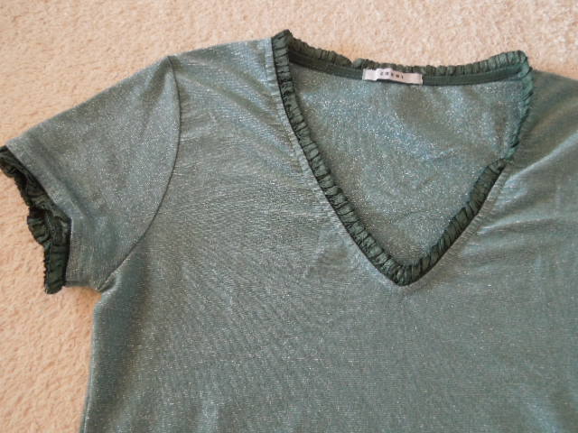 ZUUNI 半袖カットソー!Mサイズ位・ラメ入りグリーン系