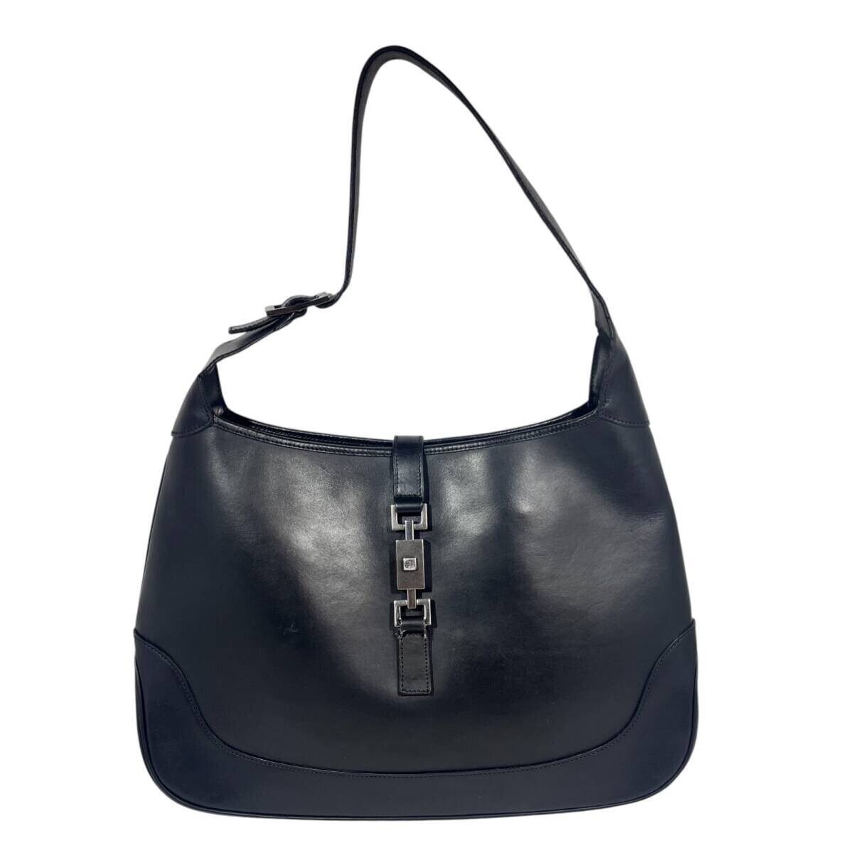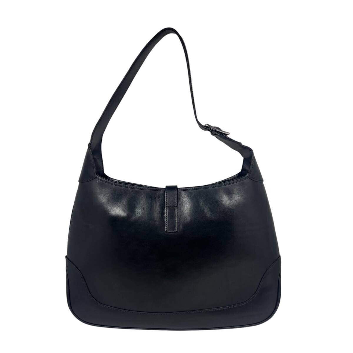 Elevate your wardrobe with this timeless GUCCI Jackie Vintage leather bag. Crafted from high-quality black leather, this iconic piece showcases the refined elegance and minimalist charm synonymous with the Gucci heritage. The sleek silhouette and signature piston clasp add a touch of vintage sophistication, while the spacious interior and sturdy shoulder strap make it ideal for everyday use. Perfect for work, travel, or casual outings, this rare collector’s item is both fashionable and functional.