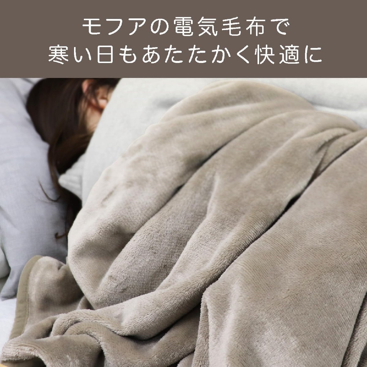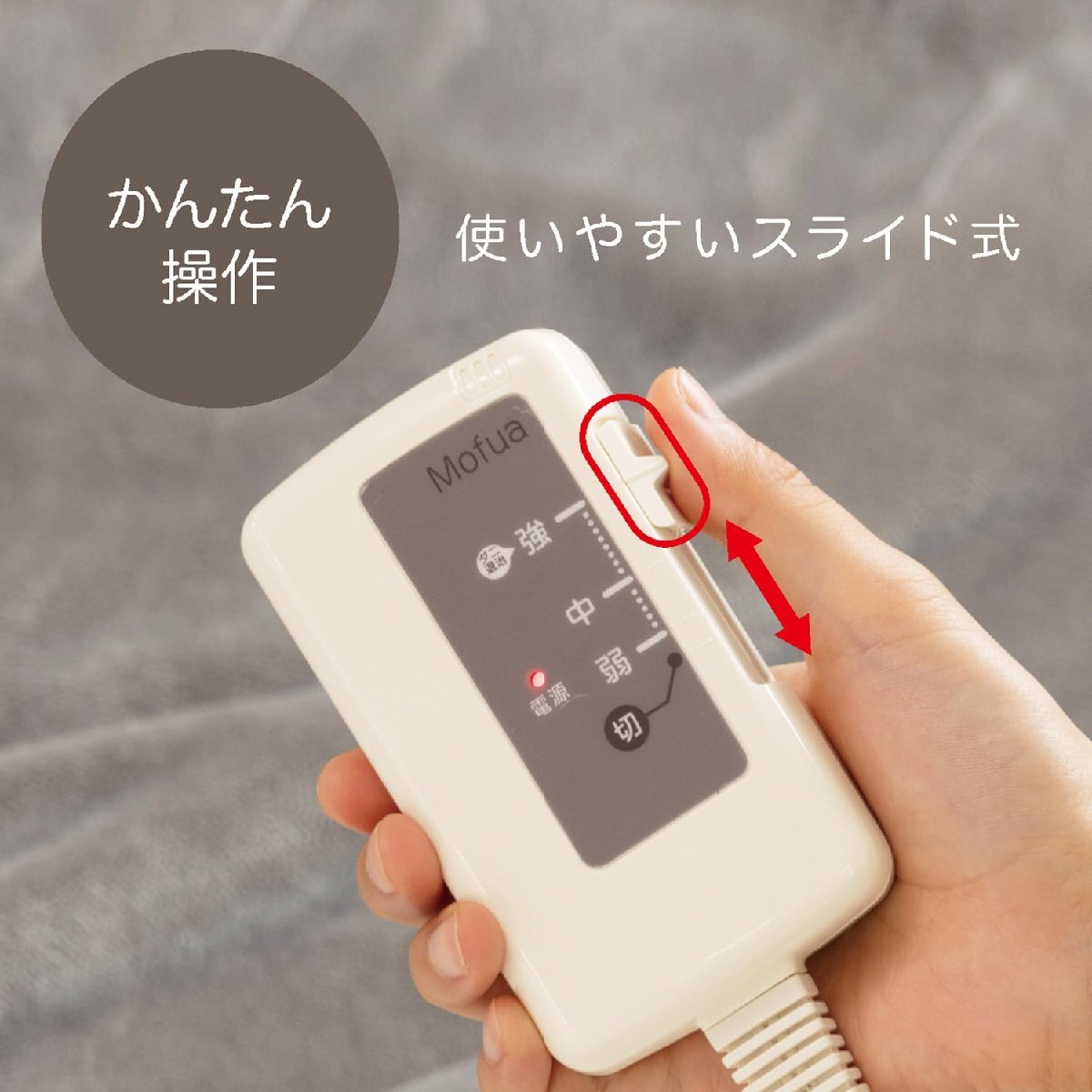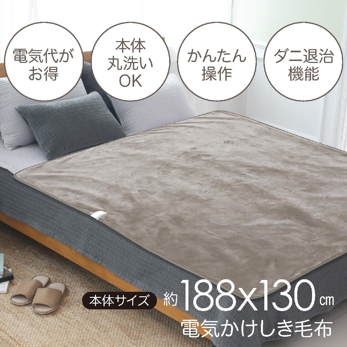 ブランド:Mofua(モフア)カラー:グレイジュサイズ:ダブル仕様商品タイプ:掛敷 毛布色・柄:グレイジュ 無地サイズ:約188×130cm組成ポリエステル100% 両面フランネル消費電力:55W電気代:約0.97円(1時間当たり)※必ず布団の中でご使用ください。日本メーカーMofua(モフア)電気毛布掛け敷き兼用(ダブル):布団の中で使用する電気掛け敷き毛布です。1人でゆったり、お子様やご夫婦2人での使用にもおすすめな大きめサイズです。両面フランネルで、化繊毛布に比べて毛玉ができにくく、裏表同じ素材だからコンセントの位置を気にせずに使えるのもポイントです。