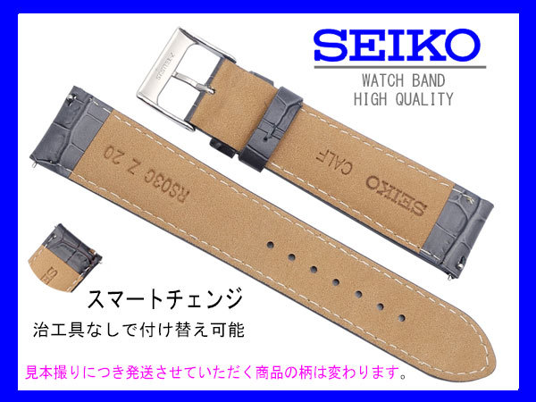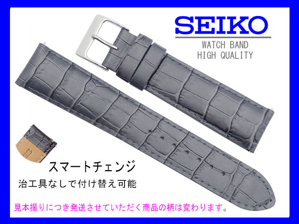22mm RS03C22GY セイコー スマートチェンジ カーフ 牛革 ワニタケフ型押 グレー 時計ベルト バンド 新品未使用国内正規品