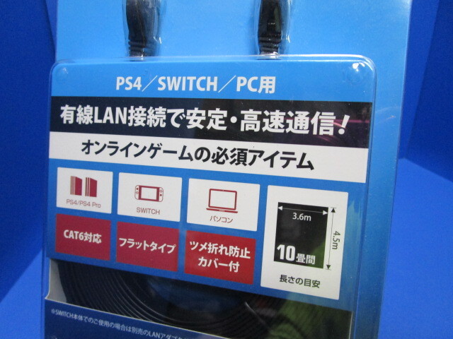 フラットLANケーブル CAT6対応 フラットタイプ ツメ折れ防止カバー 有線LAN接続で安定・高速通信。伝送速度1Gbps PS4/PS4 Pro