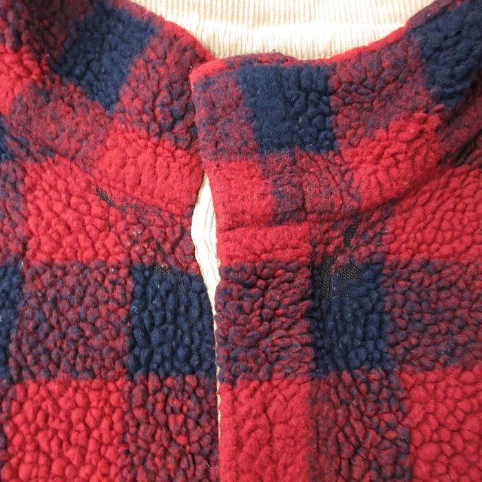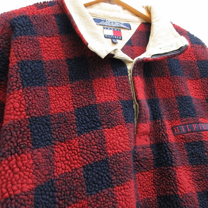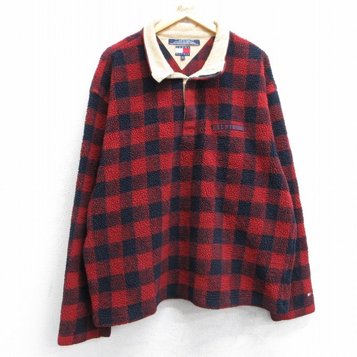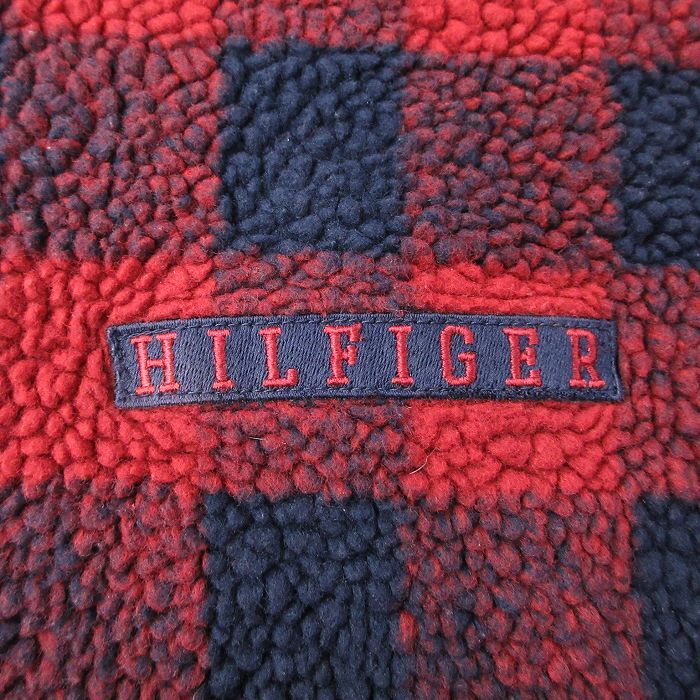 【商品名】 XL★古着 トミーヒルフィガー 長袖 ブランド フリース ジャケット メンズ 90年代 90s ワンポイントロゴ 赤他 バッファロー チェック