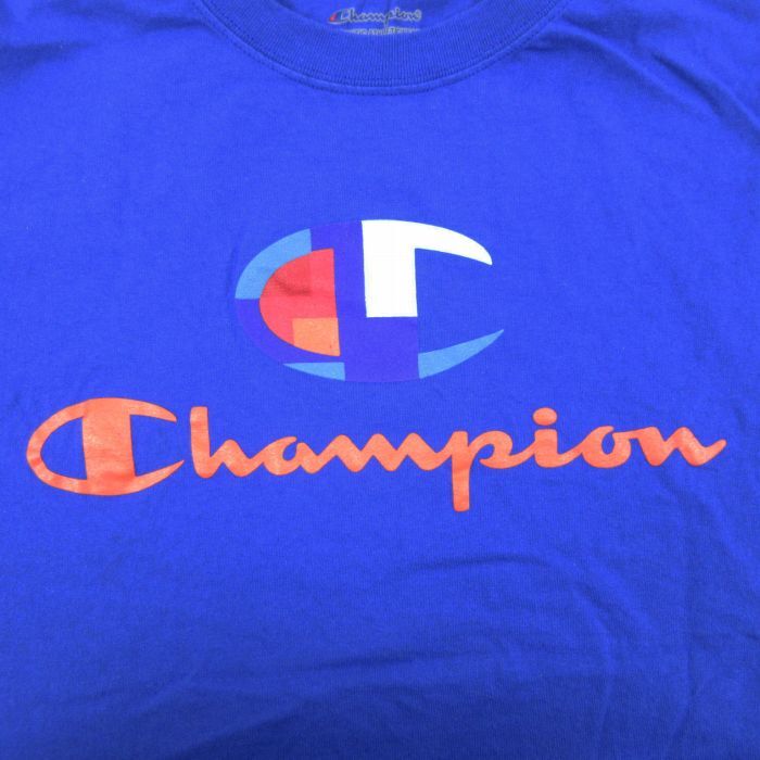 【商品名】 XL★古着 チャンピオン Champion 半袖 ブランド Tシャツ メンズ ビッグロゴ 大きいサイズ クルーネック 青