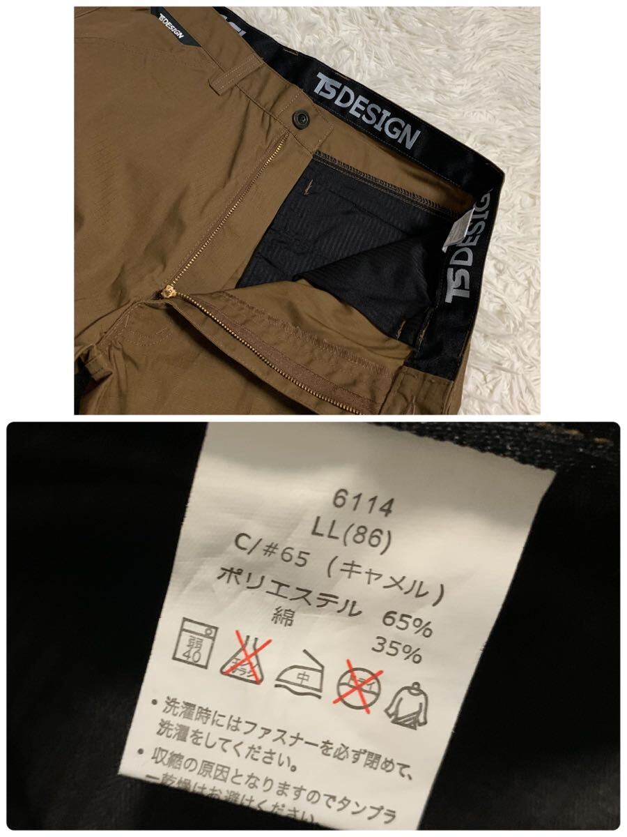 美品!TS DESIGN ワークパンツ 作業着 刺繍ロゴ キャメル LL