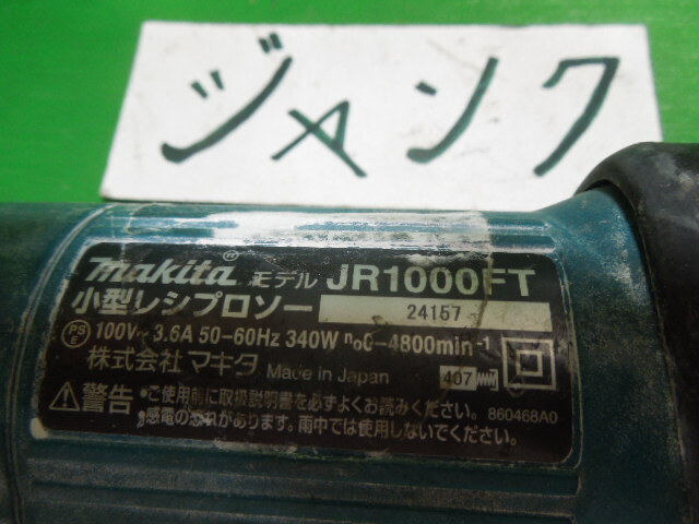 ●《ジャンク部品取り:単品取引・マキタ100V用レシプロソ-JR1000FT》●     モータ-回転未確認