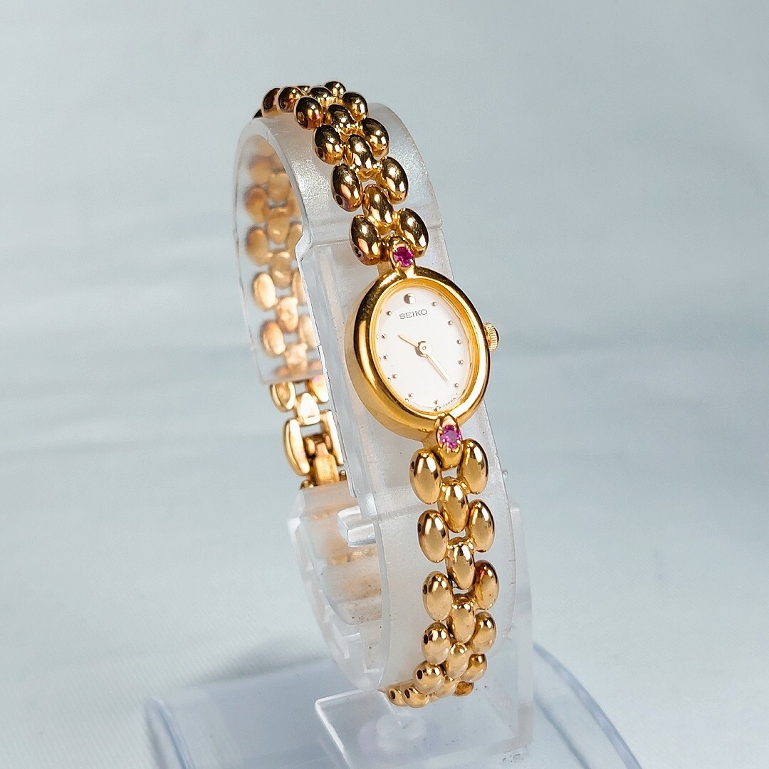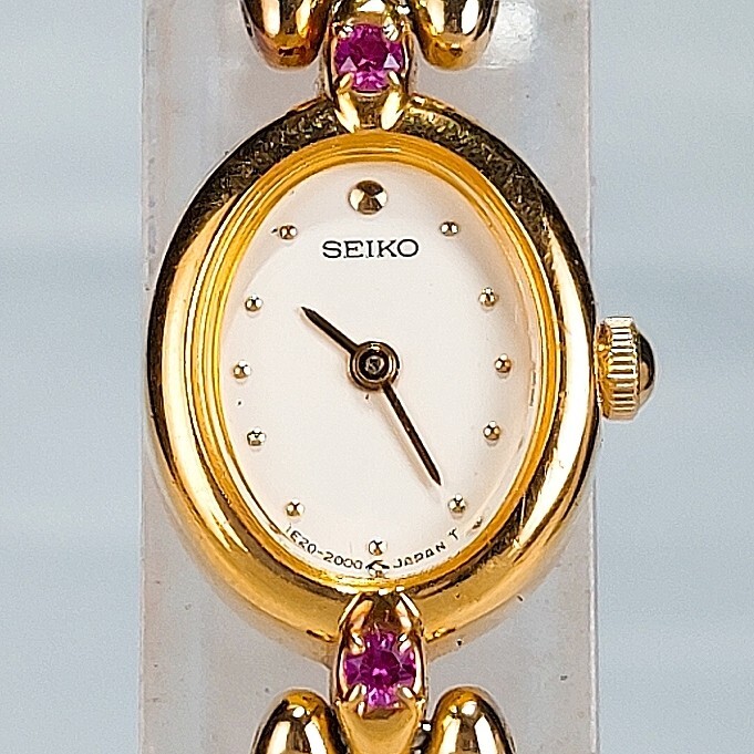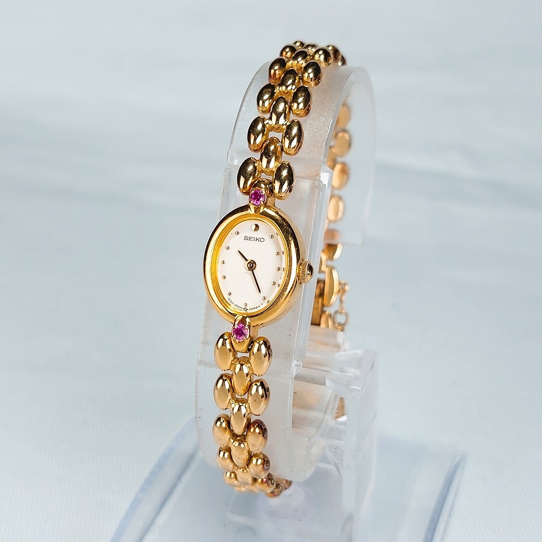 美品 SEIKO セイコー 腕時計 1E20-6140 クオーツ アナログ ゴールド ルビー ヴィンテージ 諏訪精工舎 1970年代製 電池交換済 動作確認済