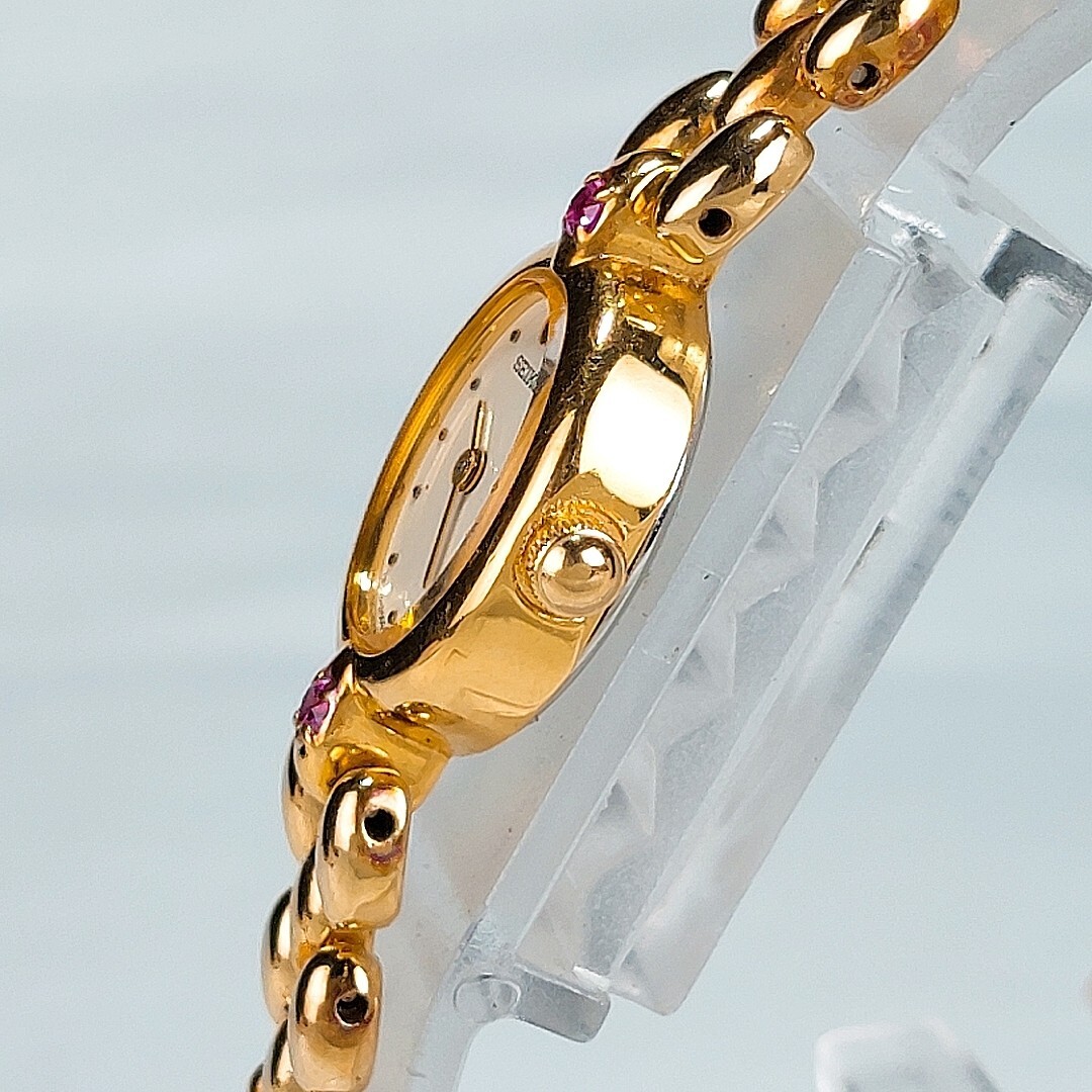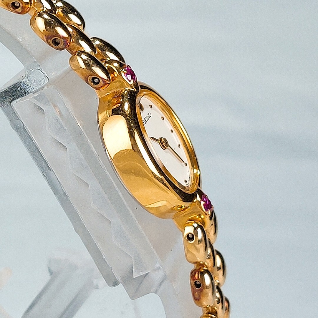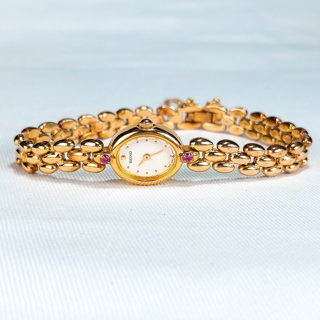 美品 SEIKO セイコー 腕時計 1E20-6140 クオーツ アナログ ゴールド ルビー ヴィンテージ 諏訪精工舎 1970年代製 電池交換済 動作確認済