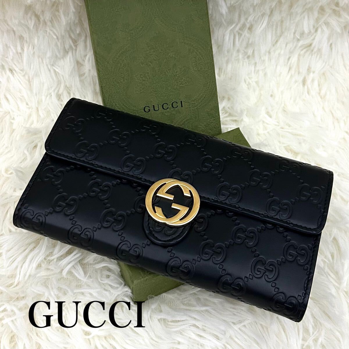 グッチシマ インターロッキングG レザー 二つ折り 長財布