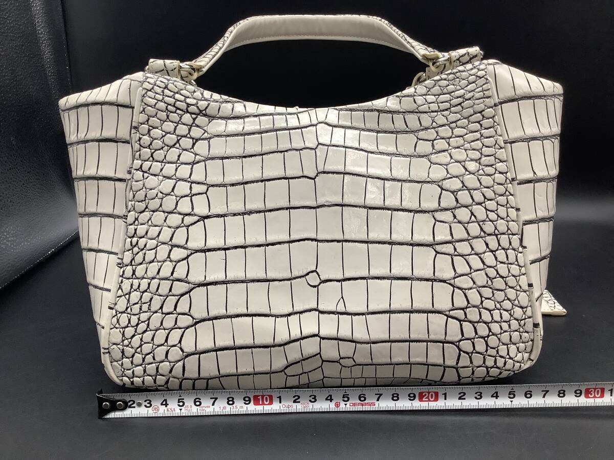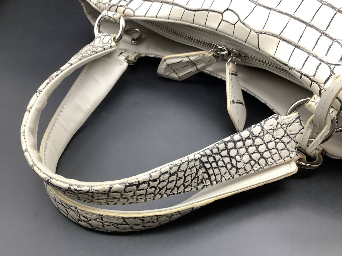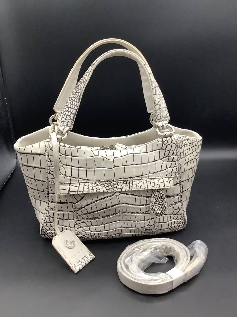 n2737 GRES 2way クロコダイル ハンドバッグ バニラ 目地染め ショルダー マットクロコ 鰐革 エキゾチック グレー ホワイト レディース