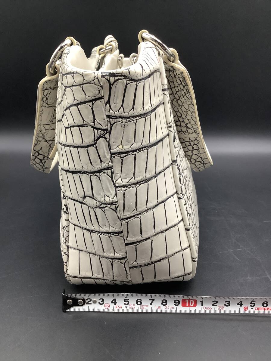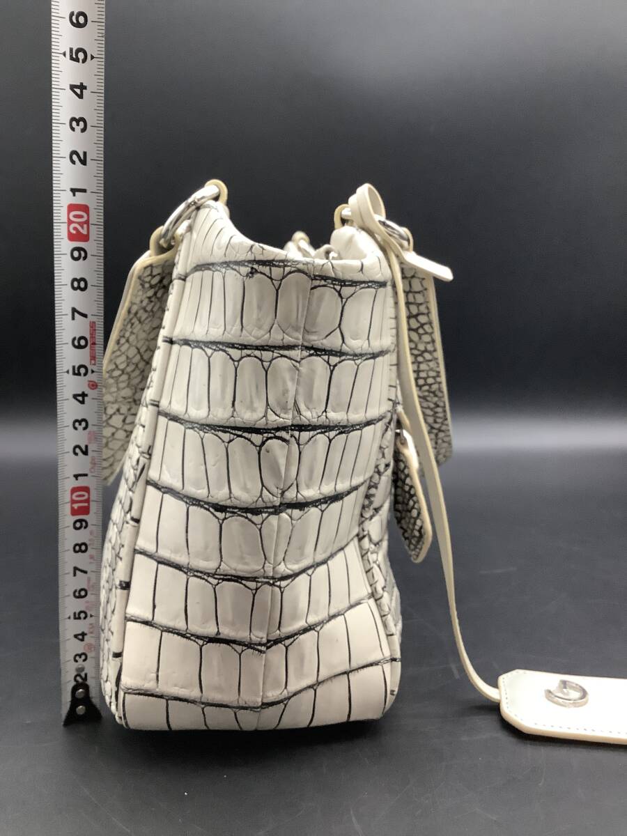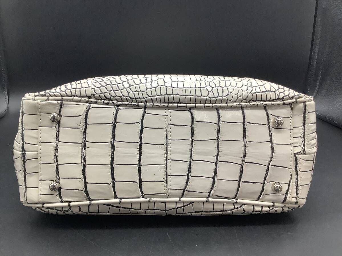 n2737 GRES 2way クロコダイル ハンドバッグ バニラ 目地染め ショルダー マットクロコ 鰐革 エキゾチック グレー ホワイト レディース