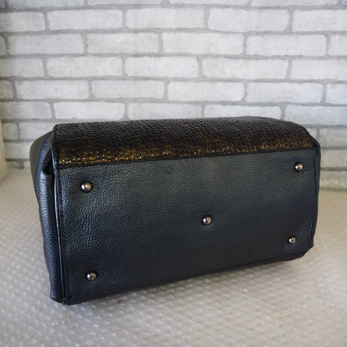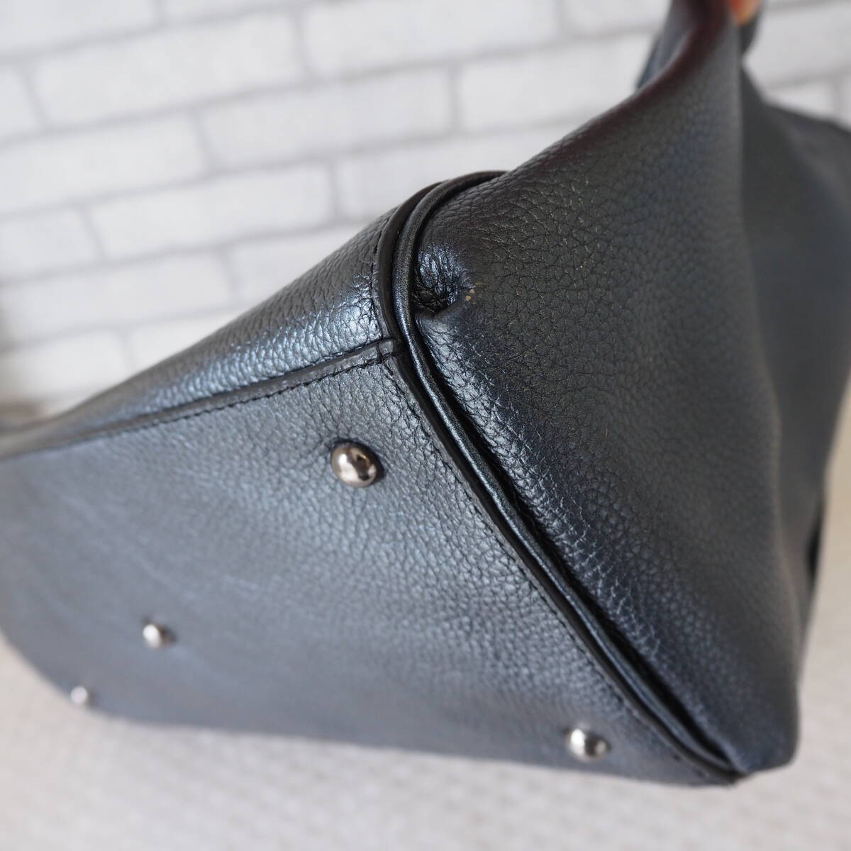 底鋲は5点仕様でバッグを地面に置いた時の革や生地の汚れや傷みを軽減します。