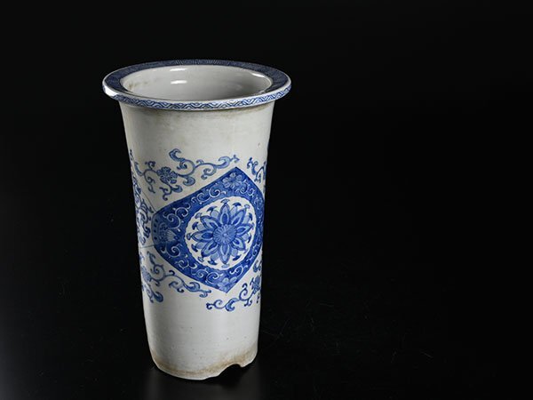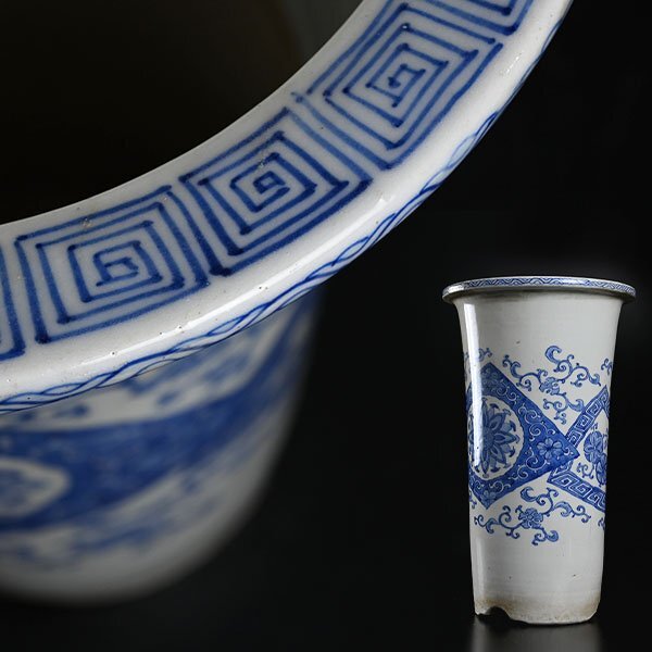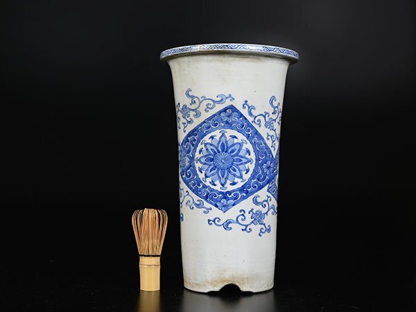染付 外縁 花唐草図 丸鉢 高さ 約34,2cm / 植木鉢 盆栽 盆栽鉢 | ||||||||||||||||||||