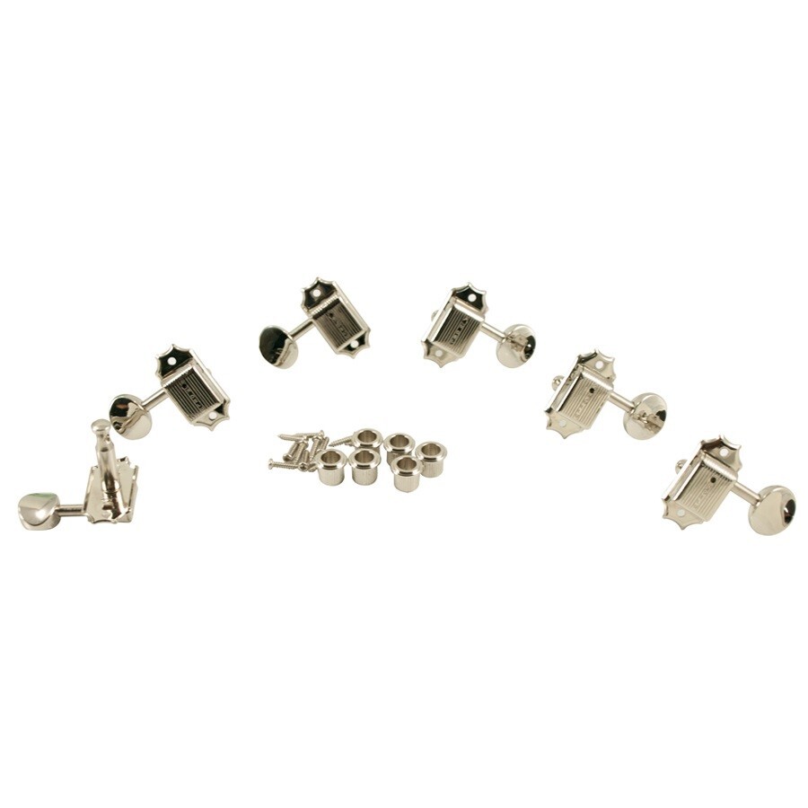 1956年後半から64年前期にかけてクルーソン社から出荷された“クルーソン・デラックス”、3対3配列、金属製丸型チューニング・ノブ・スタイルの「1列刻印」、ニッケル・メッキ仕様の復刻ペグ。