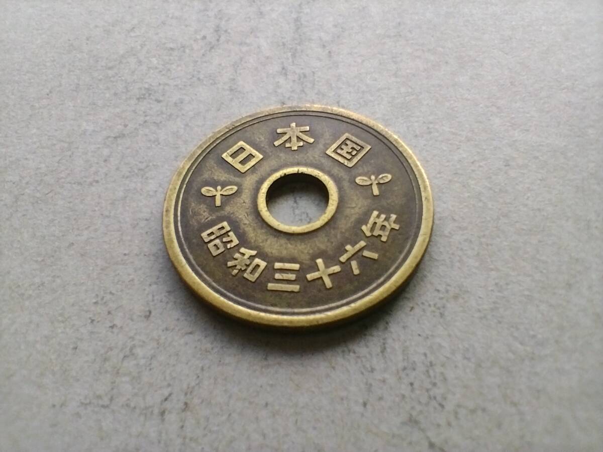 昭和36年 5円玉 5円硬貨 5円黄銅貨 昭和三十六年 1961年 一九六一年 五円玉 五円硬貨 コイン メダル 貨幣 硬貨 黄銅 真鍮 ブラス 即決