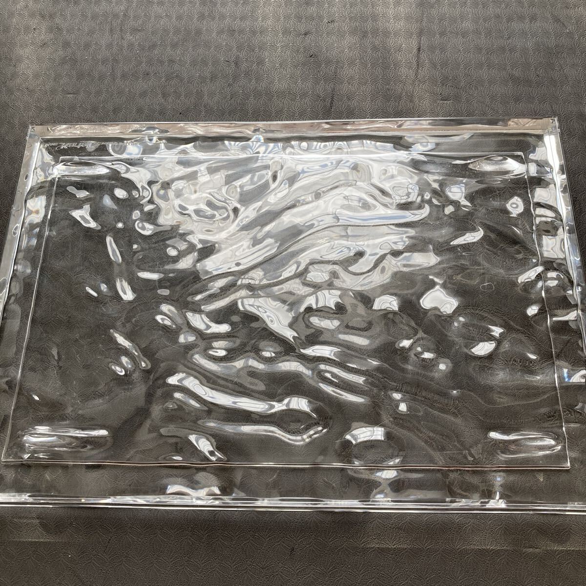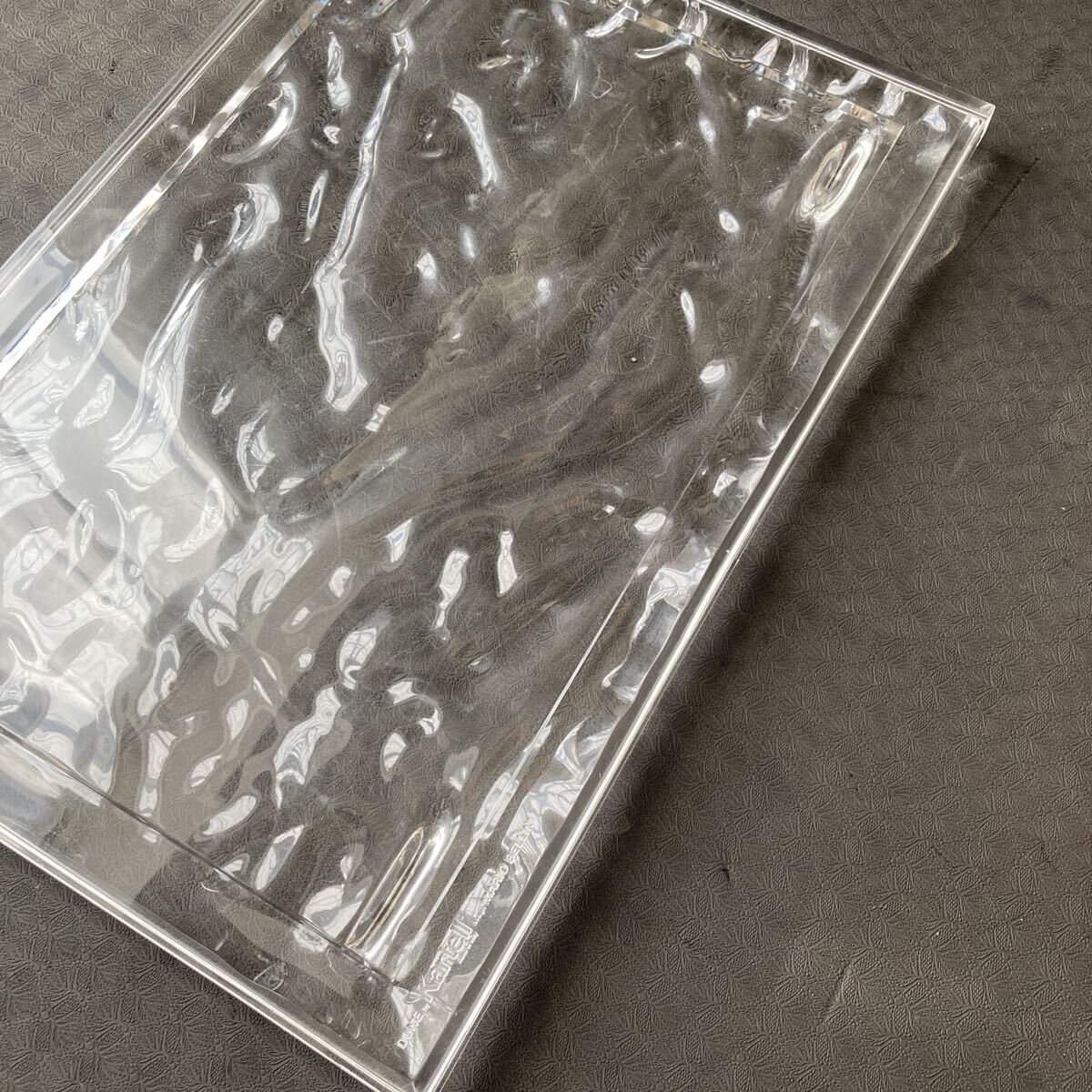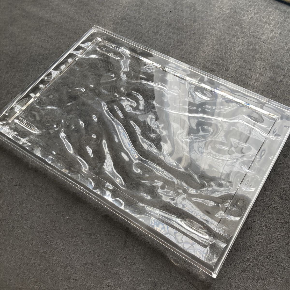 半透明のPMMAでできた刻のようなトレイは、色彩と光の輝きによりその上のグラスやカップを三次元的な不思議効果で演出します。