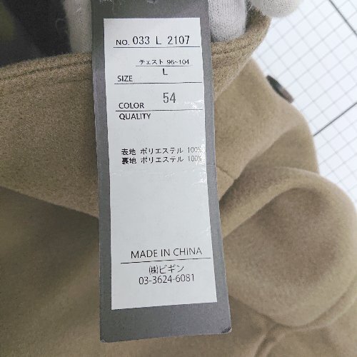 ■ ⊇ Beno ビーノ 無地 長袖 ピーコート サイズL ブラウン系 レディース E