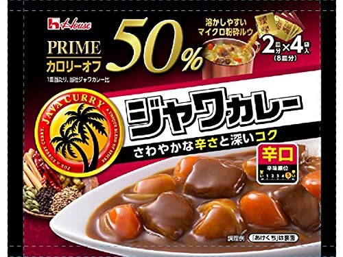 「ハウス プライムジャワカレー 辛口 112g×6個」▼4902402898772▼(商品説明)赤/112グラム (x 6)/VVAdDda1716・PatternName:新品・パッケージ個数:6・ガセット袋:プラ商品紹介 ジャワカレーのおいしさとカロリー50%オフを両立したカレーなので、カロリーを気にしている方も、スパイシーなおいしさのカレーを楽しむことができます。 スパイシーなおいしさと、カロリー・脂質50%オフの両立しました(1皿あたり、ジャワカレーと比べて)。2皿分×4袋入(8皿分)。 溶かしやすいマイクロ粉砕ルウです。 原材料・成分 栄養成分表示1皿分(製品14g) エネルギー 50 kcal たんぱく質 1.0 g 脂質 1.7 g 炭水化物 8.4 g -糖質 7.59 g -食物繊維 0.81 g 食塩相当量 2.3 g