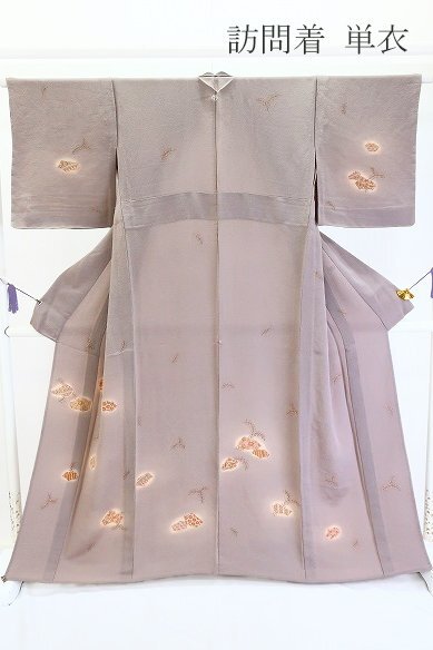 【送料無料】未使用品 訪問着 単衣 縮緬地 グレージュ 枝葉 唐草花 身丈161cm 裄丈66cm お洒落 上品 正絹 仕立て上がり 着物フィ m-8264 |