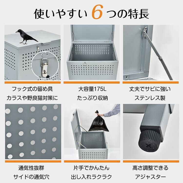送料無料 ゴミ箱 屋外 大型 ゴミステーション 収納庫 ステンレス製 大容量 175L 蓋付き カラス除け ゴミ収集ボックス カラス対策 sg227