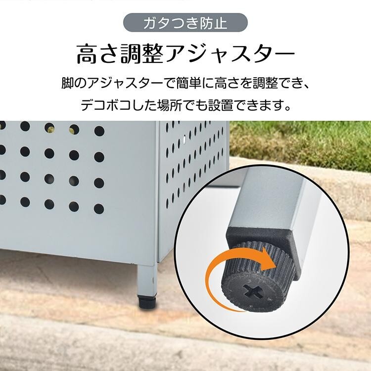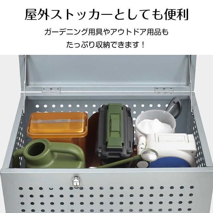 ■ゴミの保管や外の道具をスッキリ収納できるステンレス製のゴミ保管カゴです。