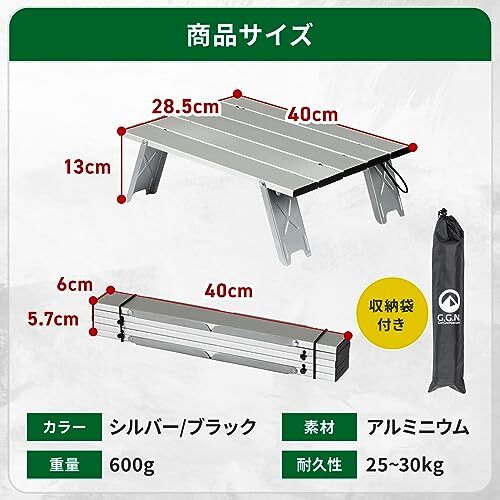 シルバー テーブル単品 ジージーエヌ キャンプ テーブル ローテーブル 折りたたみ コンパクト アルミ ロールテーブル