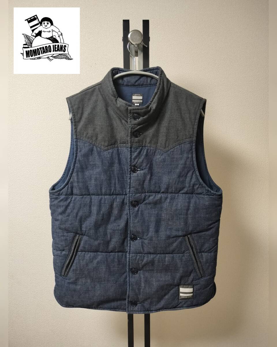桃太郎ジーンズ/MOMOTARO JEANS/シャンブレーカウボーイパデッドベスト/中綿/デニム/インディゴ/ヨークT/C素材/SIZE 40/L相当/日本製