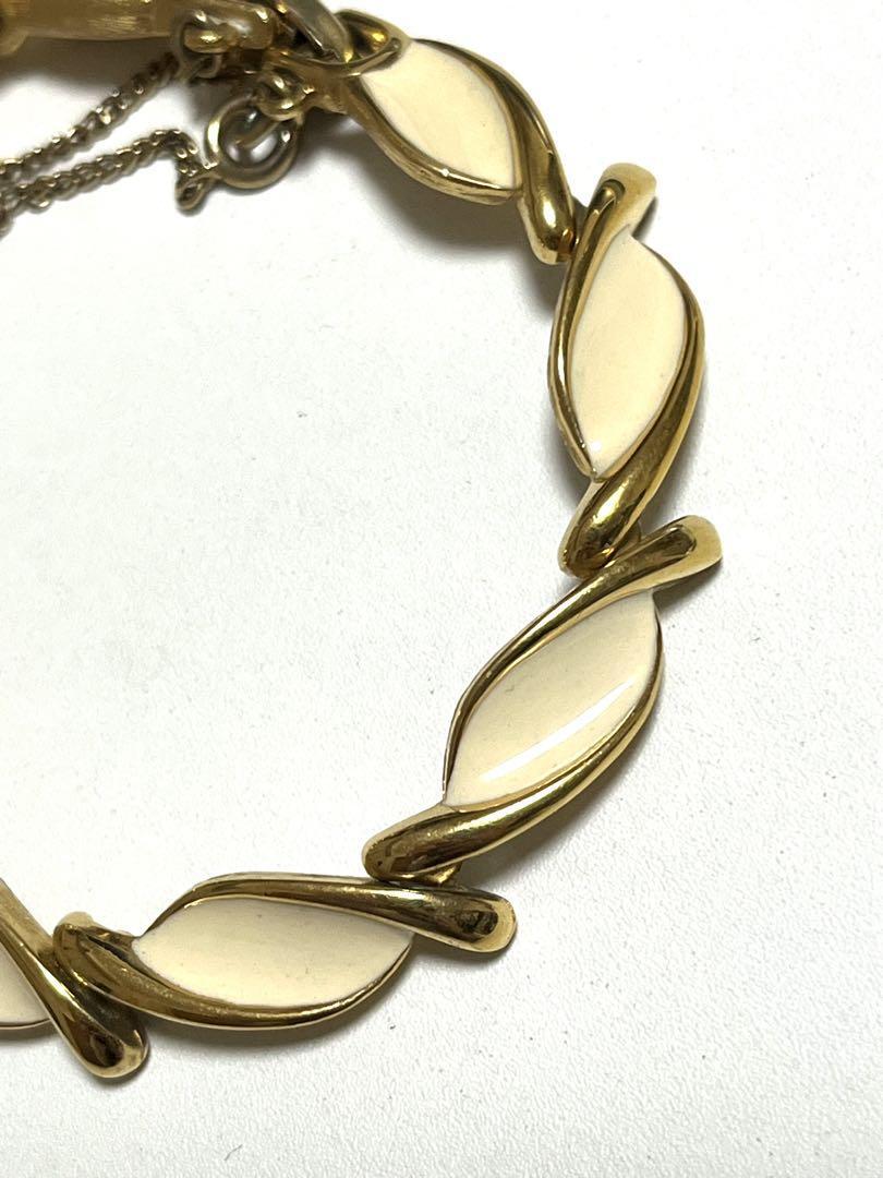 ゴールドカラーのリーフモチーフにアイボリー系エナメルが施された上品なデザイン。