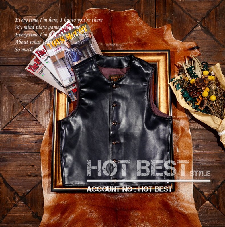 1.2mmの茶芯ホースハイド(馬革)を使用した、メンズ用レザーベスト。