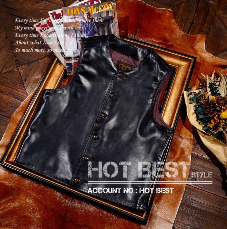 1.2mm茶芯ホースハイド 本革 メンズ レザーベスト ベスト 皮ベスト ジレ レザージャケット 馬革 Y1261/XL