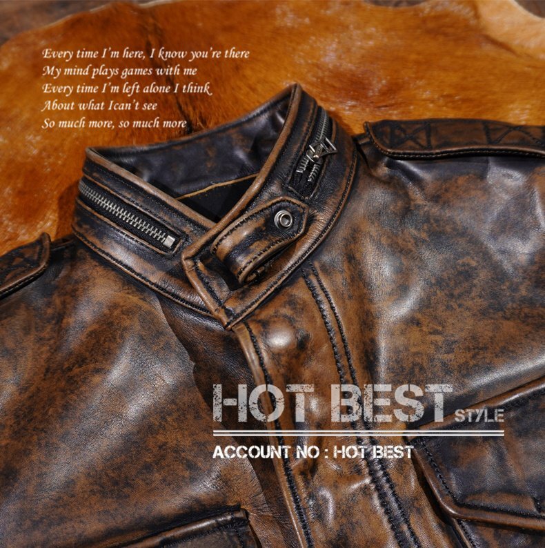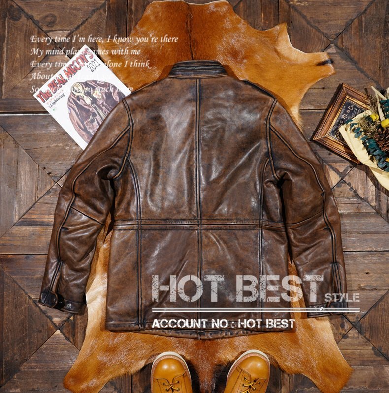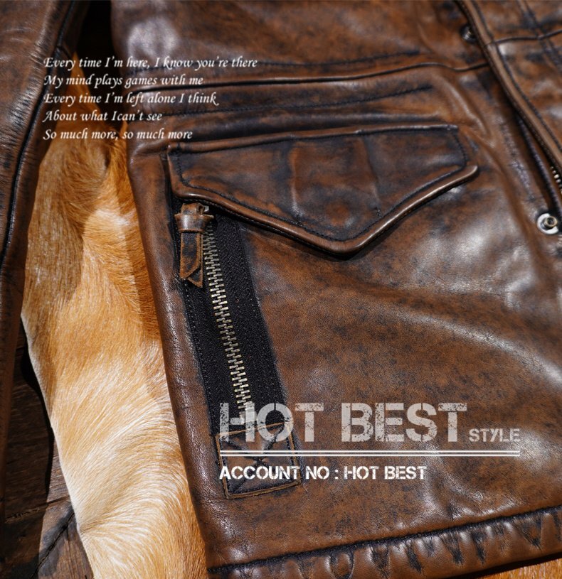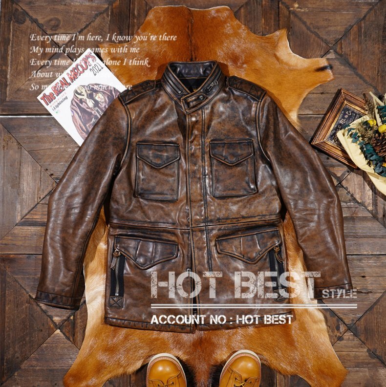 1.5mm茶芯カウハイド 復刻50'スタイル M65 革ジャン ウォッシュ加工 ヴィンテージ サファリジャケット イタリアンレザー 牛革 Y1425/4XL