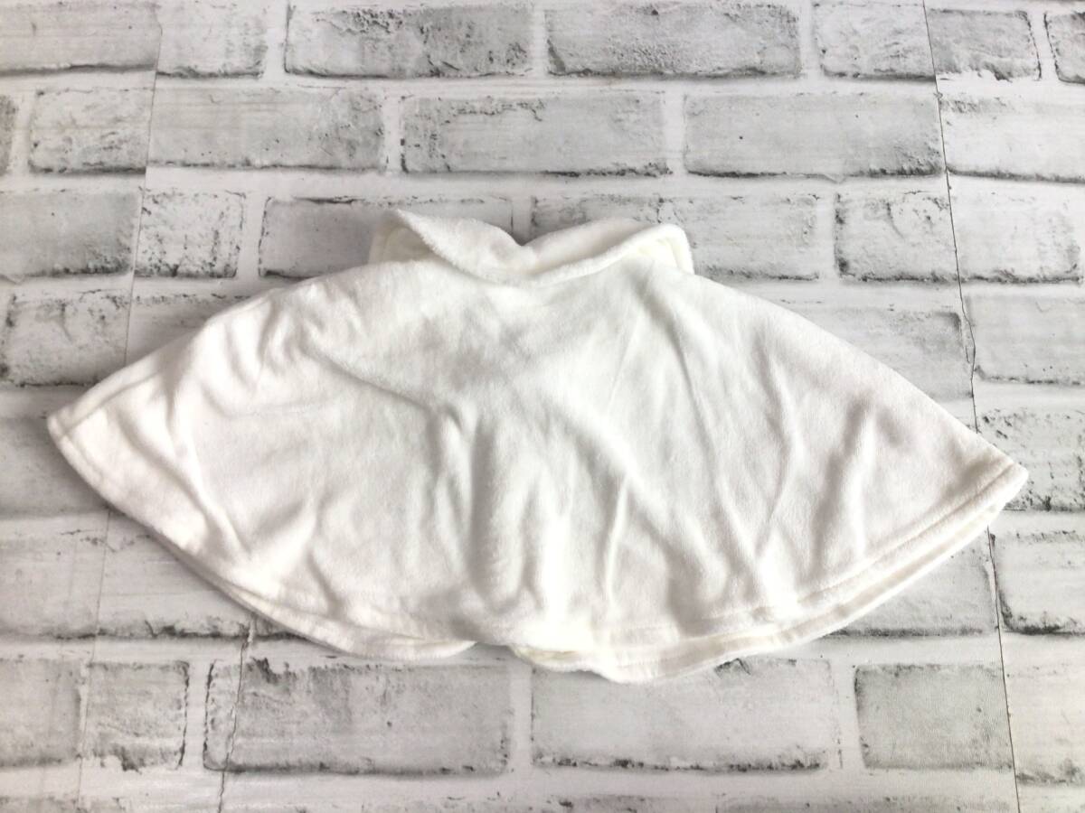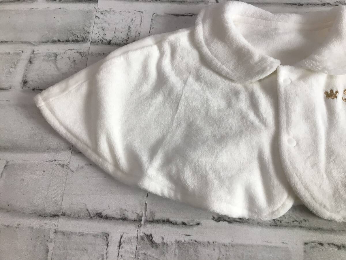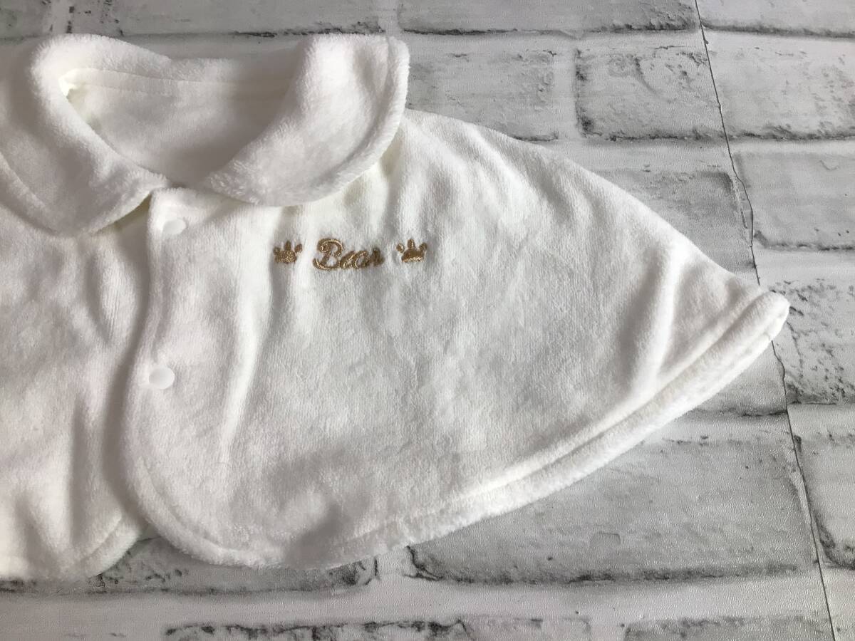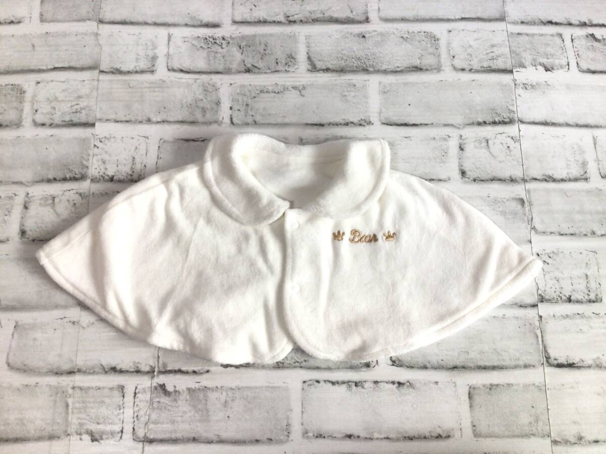 W338 Bear ベビーマント ケープ 50−60cm 襟付き ホワイト シンプル ロゴ刺繍 ボタン ベビー/キッズ/子供服 古着 現状品