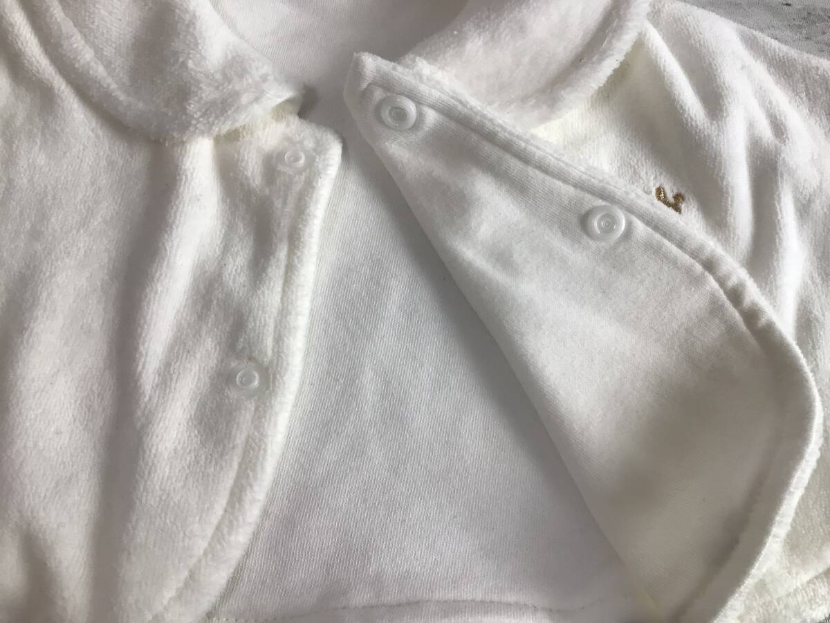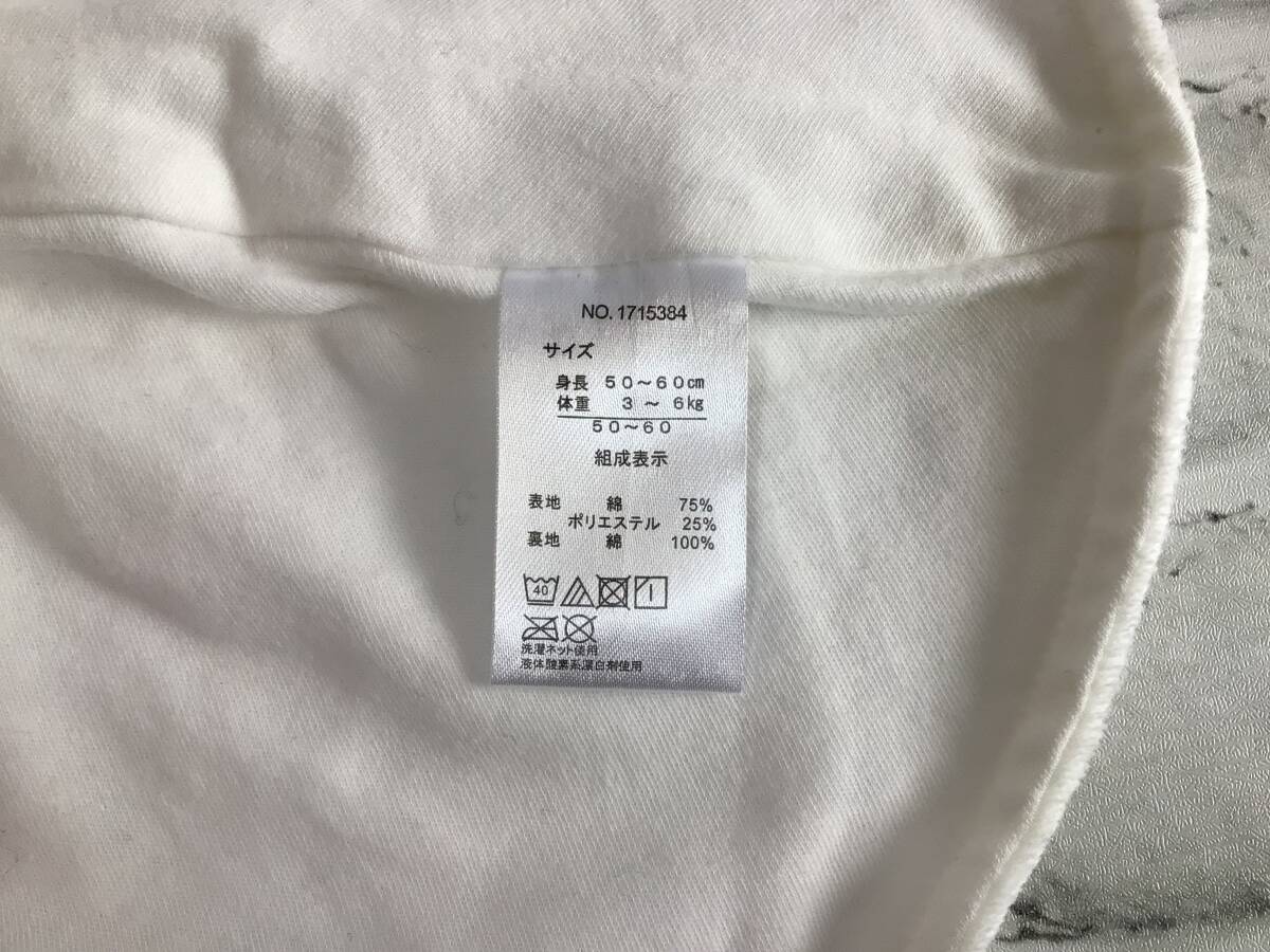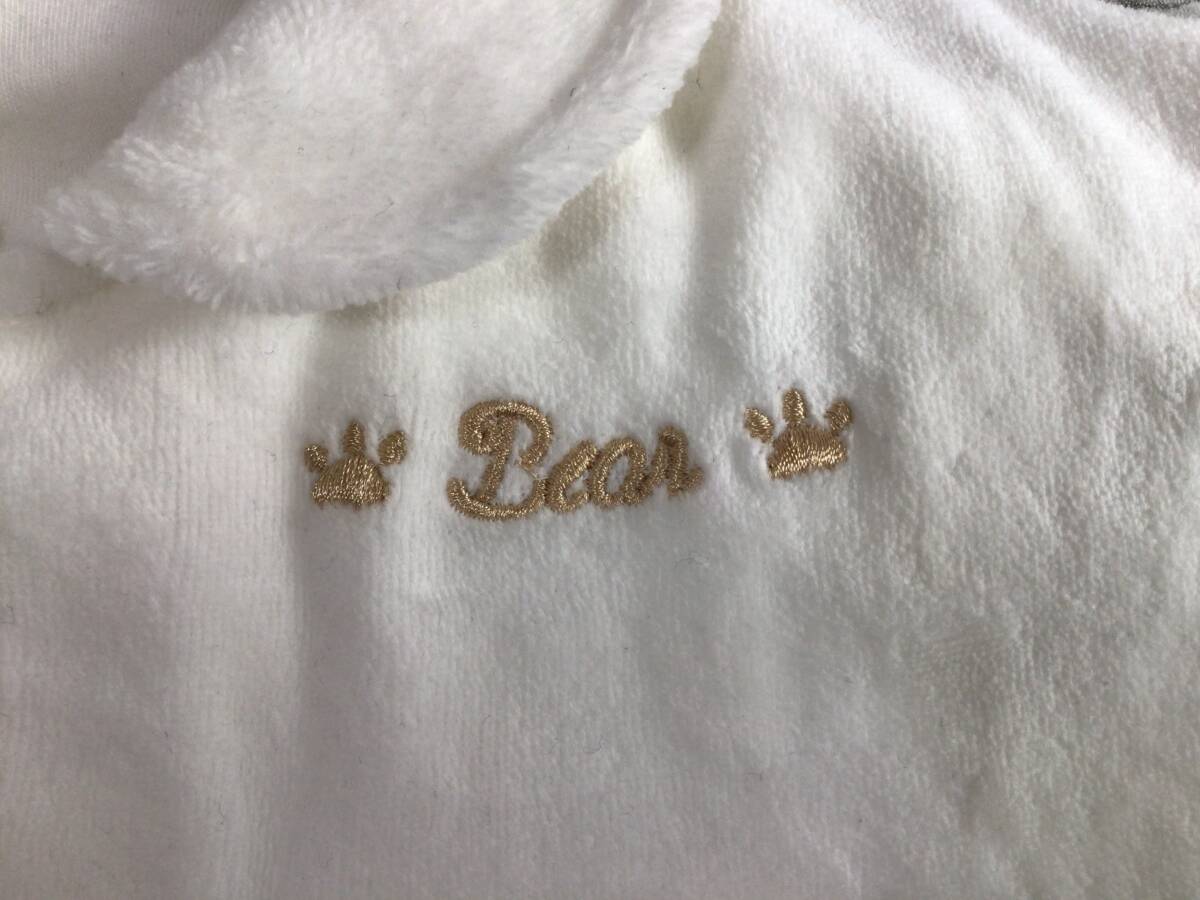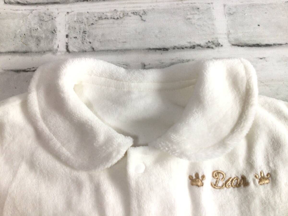 W338 Bear ベビーマント ケープ 50−60cm 襟付き ホワイト シンプル ロゴ刺繍 ボタン ベビー/キッズ/子供服 古着 現状品