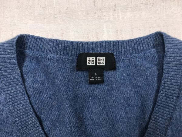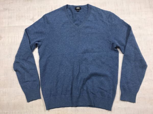 ユニクロ UNIQLO オーセンティック トラッド 古着 カシミヤ100% Vネック ハイゲージ ニット セーター メンズ S 青 です。