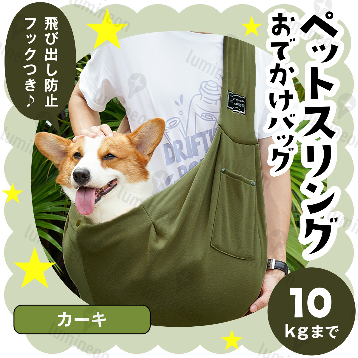 ペット スリング キャリー バッグ ショルダー 持ち運び カーキ 緑 抱っこ紐 抱っこひも リュック カート 小型犬 中型 犬 バック g061g