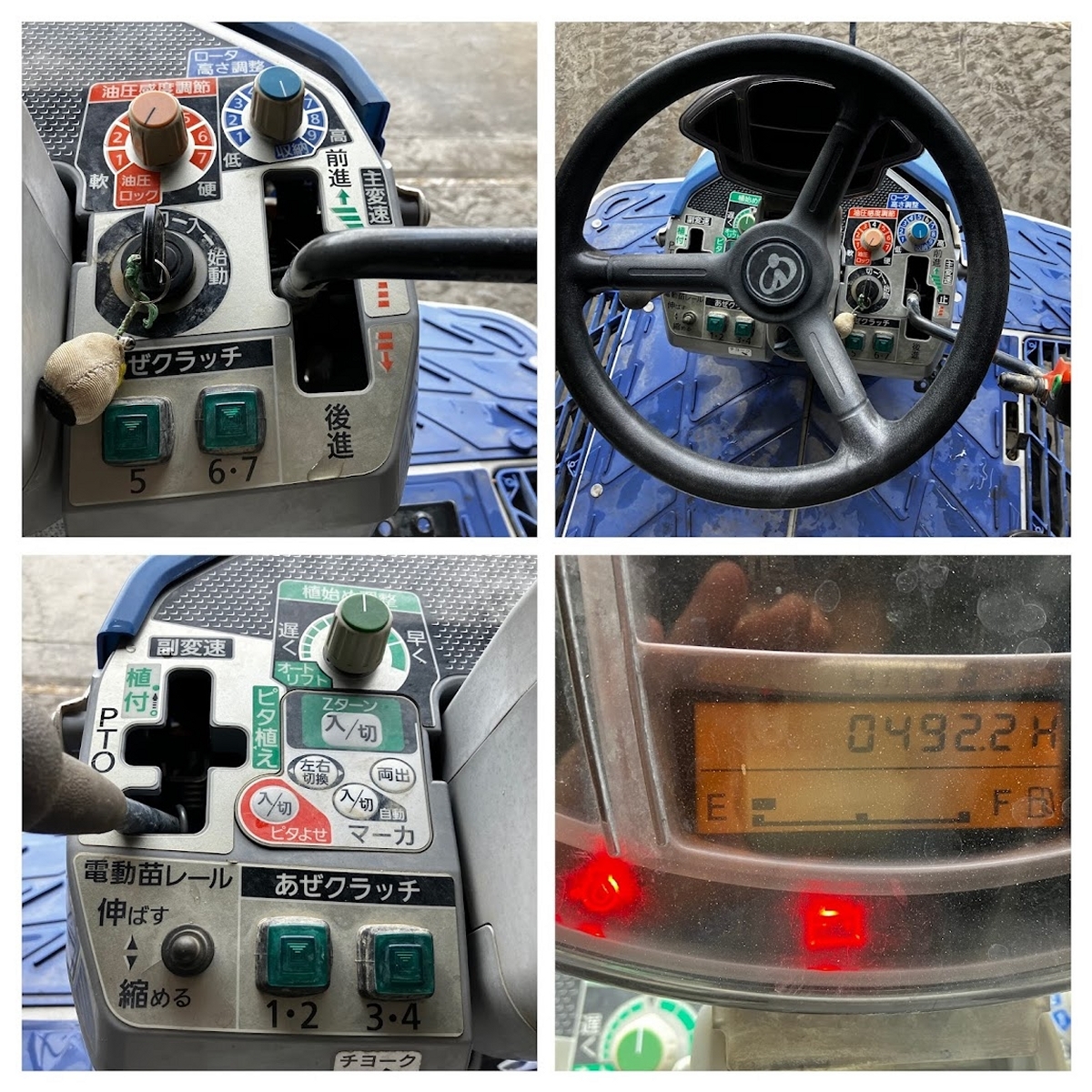 ![]() ![]() ■サイズ(付属含む)※参考 ・車体=全長2700mm × 全幅1500mm × 全高1800mm ■アワーメーター:492h 記載時間(移動により変動の可能性有り) 【機能】 ■7条植 ■変速:HST ■給油方式:ガソリン ■植付つめ:ロータリー式 ■施肥機:有 ■除草剤散布機:有 ■殺菌殺虫剤散布機(箱まき):無 ■育苗箱施用剤散布機:有 【動作】 ■エンジン始動:可 ■バッテリージャンプ:不要 ■前後進全ギア:正常 ■ブレーキペダル:正常 ■ワンタッチ昇降:正常 ■マーカー:異常あり(右マーカー動作不可)・(左マーカー歪み、最後まで畳まれず交換必要) ・異常あり風車マーカー1本足りない ■植付部の作動:正常 ■植付部の昇降:正常 ■オートアップ:正常 ■バックアップ:無 ■ホーン:正常 ■ライト・ウインカー:正常 【状態】 分解しての検品、整備は行っておらず現状渡しとなりますので、その分お買得価格にてご提供いたします。 ■車体(外装ボディ等の状態について特にカバー類の破損等) 使用と保管に伴った錆・キズ・汚れが見受けられますが、動作に影響するものはございません。 ■苗載せ台の状態 問題なし・異常あり 変色:有 破損:無 ■植付部:異常あり ※油汚れ ■オイル:異常あり ※オイルにじみ(植え付け部爪) ※現状、オイル交換しておりませんので交換してからご使用を推奨します。 ■植付軸(アタッチメント):問題無し ■タイヤ:異常あり ※摩耗(前左・前右・後左・後右) ■ファンベルト:問題無し ■ウォーターポンプ:問題無し ■エンジンオイル:問題無し ■ミッションオイル:問題無し ■冷却水:問題無し 【付属品】 画像参照 ※画像にてご確認いただけるものが全てとなっております。 ※バッテリーと燃料に関して 弊社にて動作確認時に始動できたお品物でも、引取の際に始動できるとは限りません。 引上げの際にはジャンプスターターもしくは新しいバッテリー、燃料をお持ちいただくことを推奨しております。 なお、保管倉庫での貸し出しは致しかねます。
