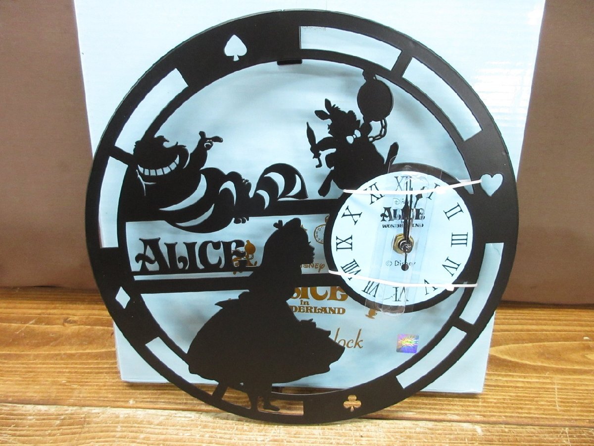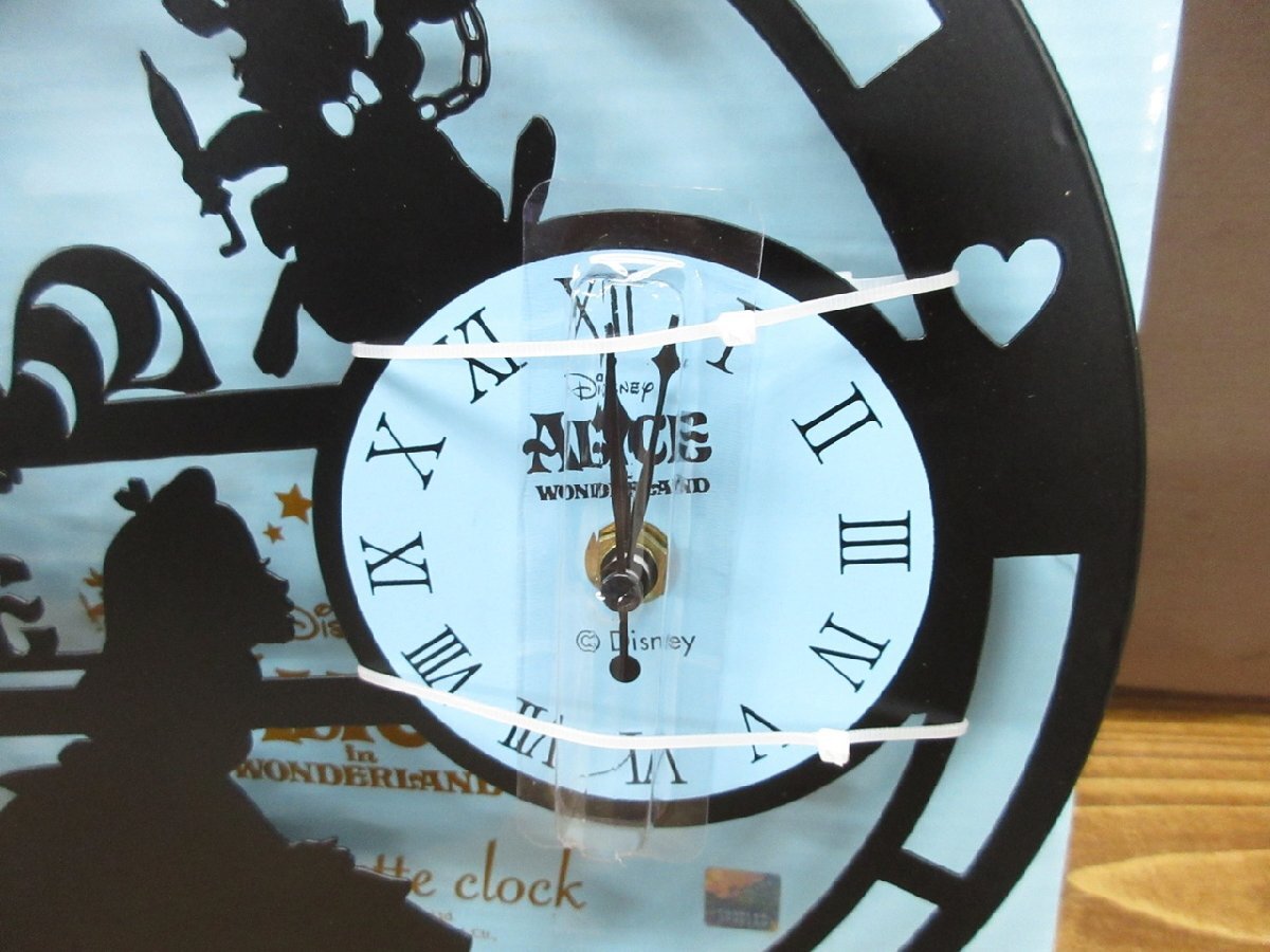 【N2-2783】即決 未使用 レコード 看板風 壁掛け時計 不思議の国のアリス Alice in Wonderland 小説 ディズニー 約27cm 同梱可【千円市場】