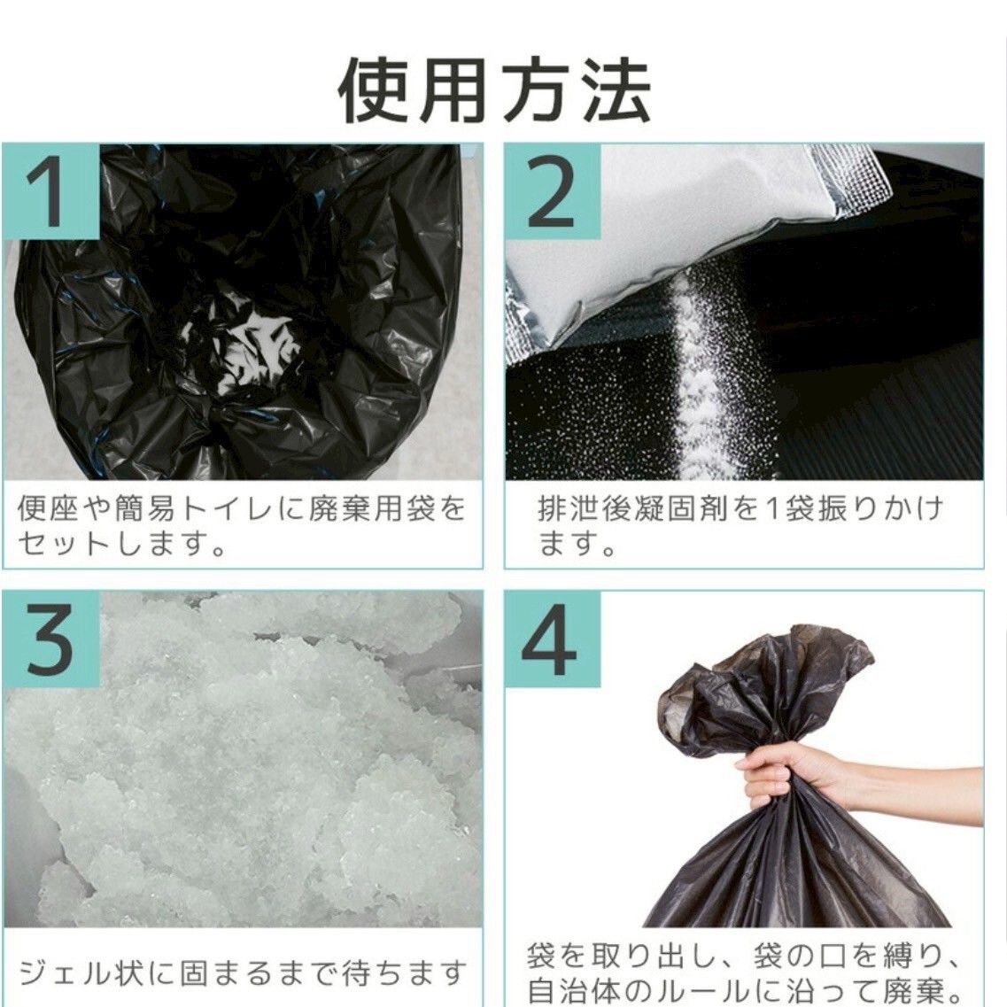 ・水不要で簡単設置:袋や簡易トイレに凝固剤を入れるだけ!