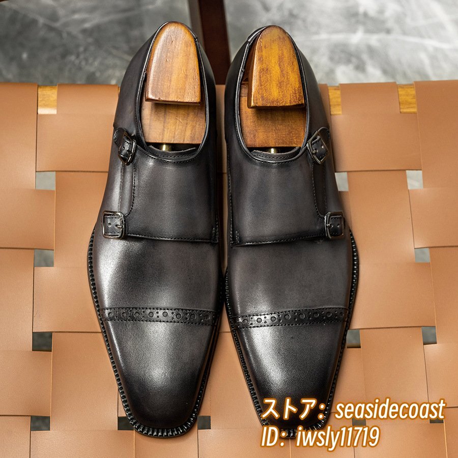 定価11万◆ビジネスシューズ 超希少 職人手塗り上げ 彫り 本革 レザーシューズ 紳士靴 牛革 革靴 ダブルモンクストラップ 冠婚葬祭 26.0cm