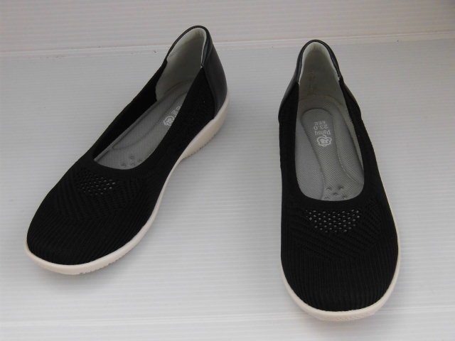 痛くない柔らかカジュアル ハンズフリー パンプス 24.0 柔らかニット パンジー 4304 黒 婦人 レディース ウォーキング シューズ スリッポン