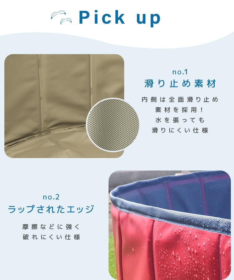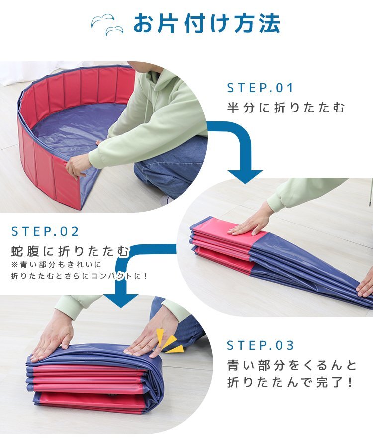 簡単設置、簡単片付けでマルチに使える折りたたみプール! 面倒な空気入れ作業がないので、パタパタ開いて水を入れたらすぐに遊べます。 ワンチャンの水遊びやお風呂としての使用の他、子供用のプールや砂場、室内ではボール遊びにもオススメ! 使い終わったら畳んでコンパクトに収納できます。 ※カラーボールは別売りです ■商品コード:GAC005DG ■商品仕様 カラー:コーギー サイズ:(約)120cm×120cm×30cm 重量:(約)3.9kg 素材:ポリ塩化ビニール(PVC) ■注意事項 ・使い始めは、素材特有の匂いがする場合があります。一日程度、風通しの良い場所に広げておくと解消されます。 ・製造過程の為、多少の折り目、製造時の汚れ、シミ、シワ、色落ち、若干の接着剤残りなどある場合がございます。 不良ではありません。これらを理由とする不良返品、不良交換はお受け致しかねます。予めご了承下さい。 ・必ず保護者同伴のもと、本商品をご利用下さい。 ・本品は水深が深くなるため、対象年齢未満のお子様は使用しないで下さい。 ・プールを置く付近に破損の原因となるトゲやガラス片、金属片、木片、砂利などがないか、ご確認下さい。 ・タバコや火気には近づけないで下さい。 ・プールは安定した平らな場所でご使用下さい。 傾斜のある場所、タイル・煉瓦など目地や段差のある場所でのご使用は変形・破損の原因になりますので避けて下さい。 ・表面に塗装、コーティング等の処理された場所でのご使用は塗装等が変色したりプール本体に色移りすることがあります。ご注意下さい。 ・商品は、モニターによって色合いが異なって見える場合があります。 ・仕様・デザインは改良のため予告なく変更することがあります。 ■保障期間 7日間 ※商品到着後7日以内の初期不良・破損のみご対応させていただきます。 【新品未使用品です】 |