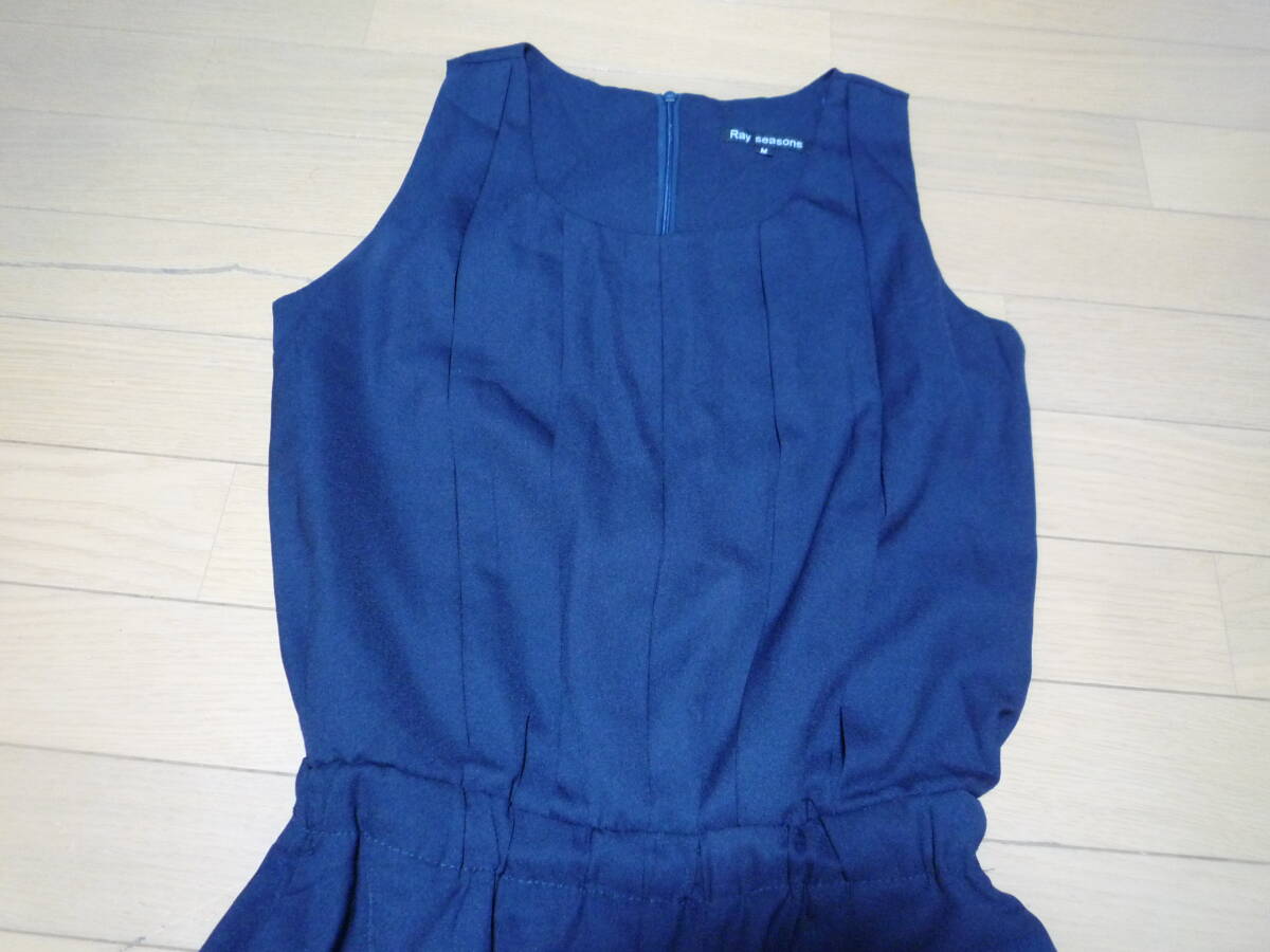 サロペット オールインワン パンツ ノースリーブ 紺 M★送料無料