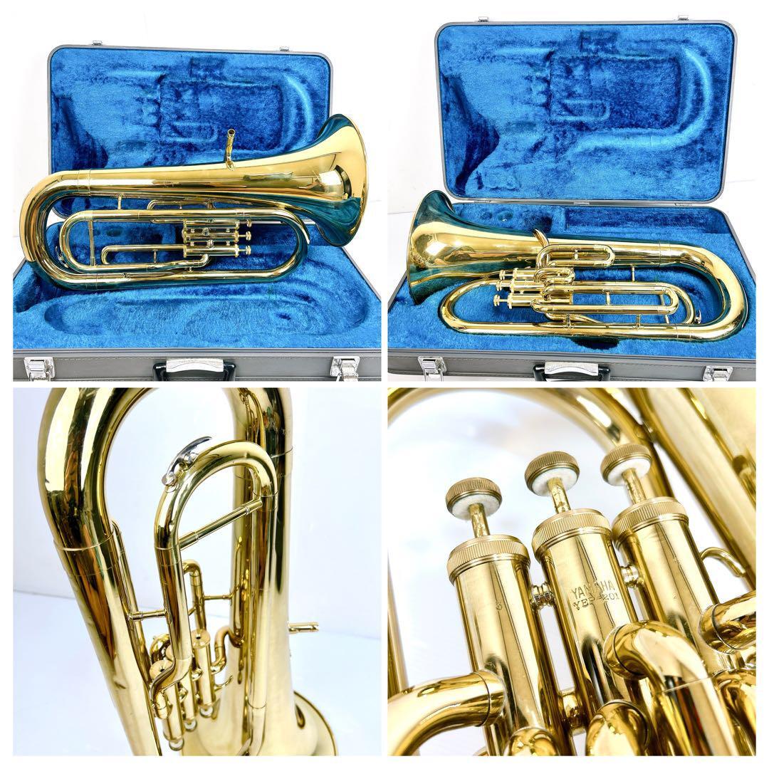 ヤマハ製の研磨剤にて簡易クリーニング済みで一応吹奏楽出身の知人に動作確認済みです。また簡易的にグリスアップとバルブオイルのメンテナンス済みです。